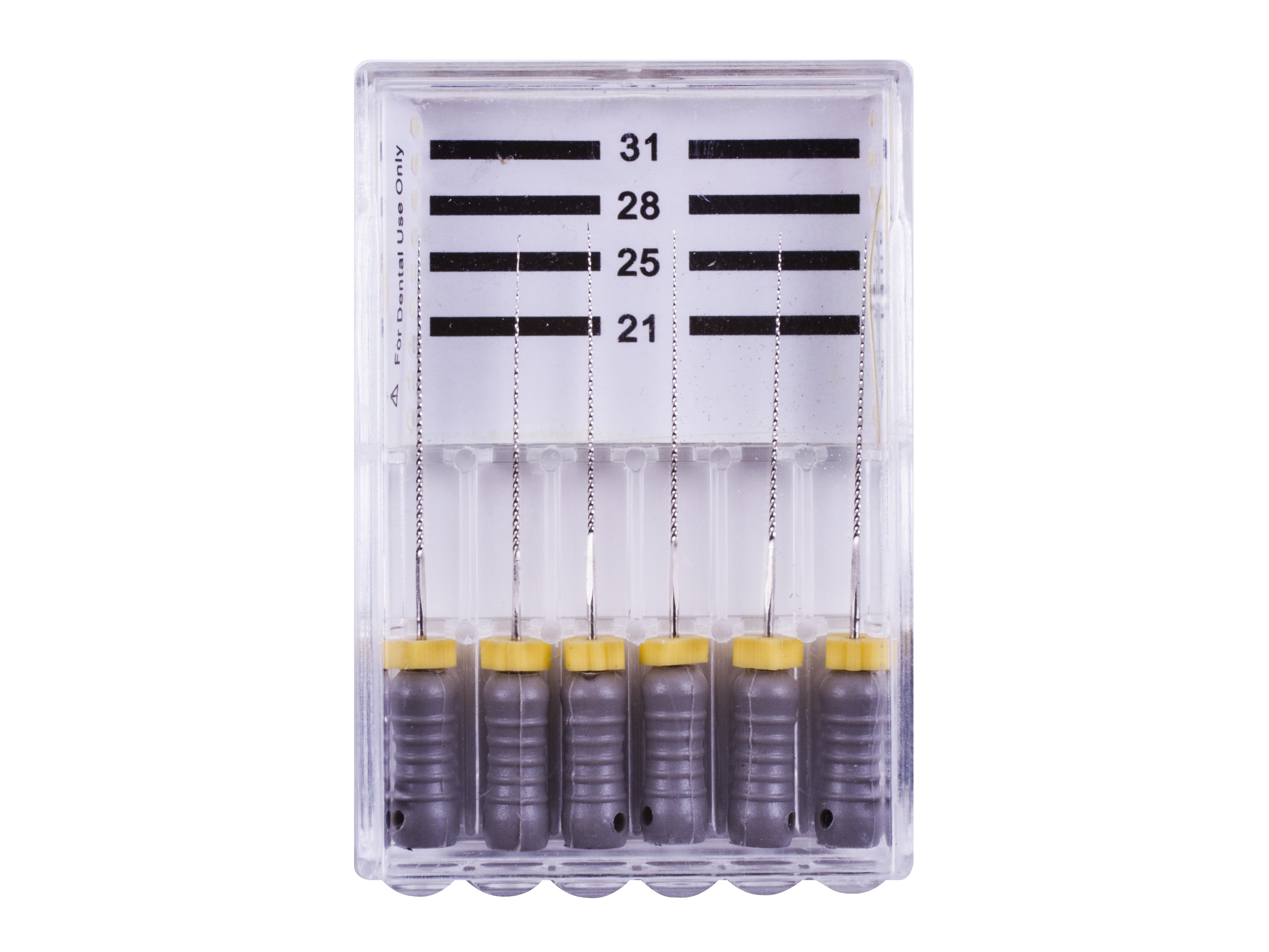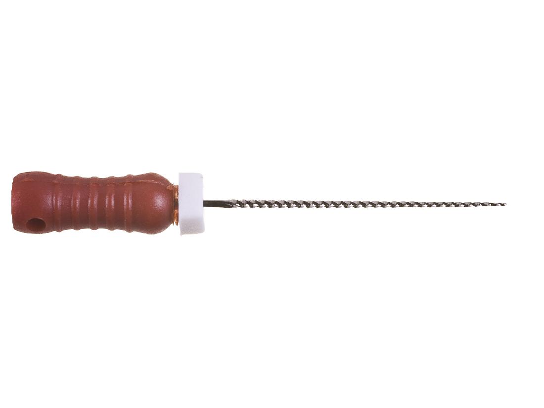К-Файл 08 (длина 25 мм) с квадратным сечением применяется для расширения и формирования зубных каналов. Обработка производится пилящими и вращательно-режущими движениями с углом вращения до 90 градусов. Инструмент состоит из рабочей части с режущими плоскостями для выполнения процедур, металлического стержня и пластмассовой ручки. Имеет высокую прочность, оптимальную гибкость. Снабжён силиконовым ограничителем.