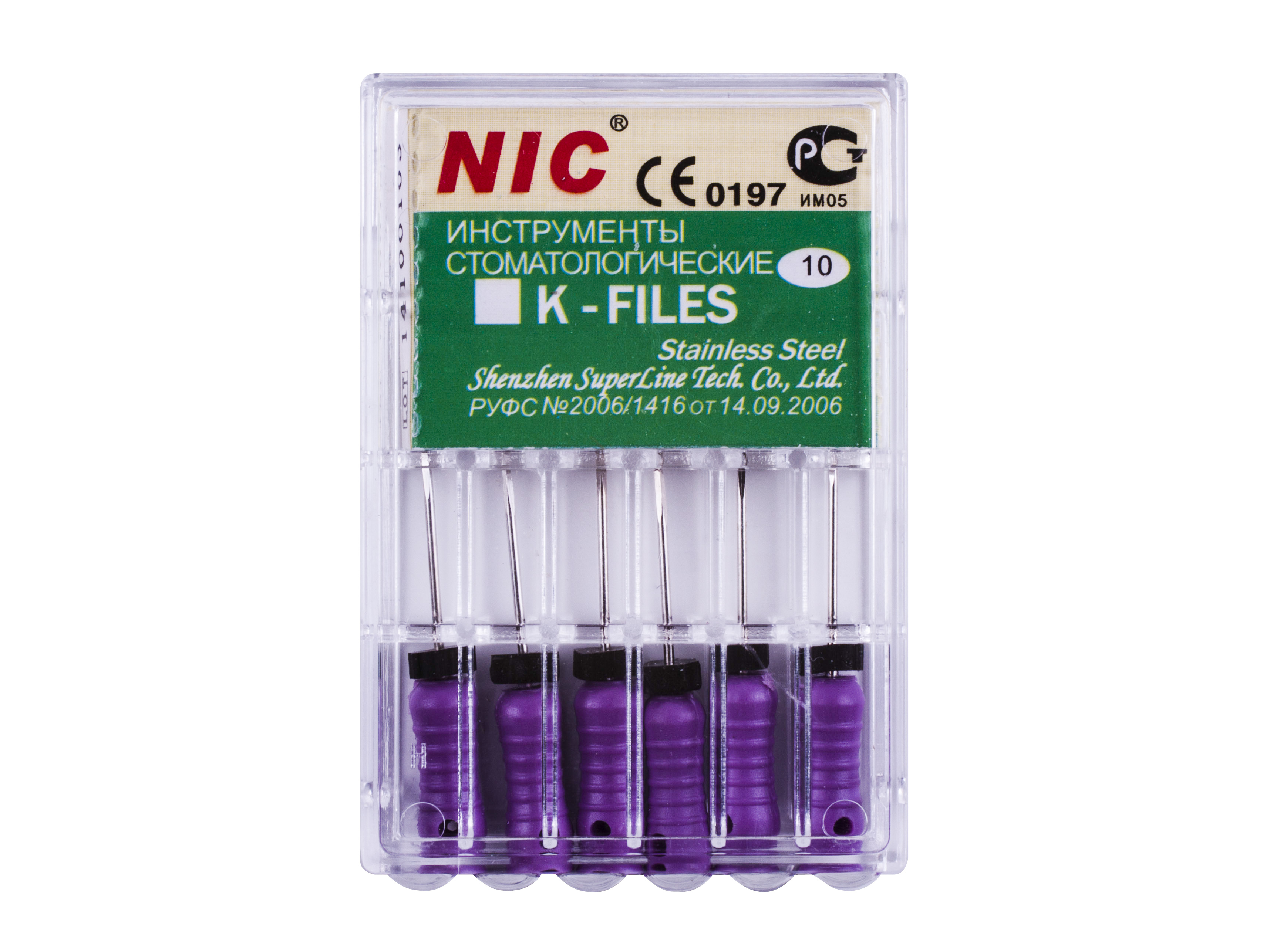 Эндодонтический инструмент из хромоникелевой стали для выполнения процедур по расширению просвета зубного канала и придания ему необходимой формы. Высокая эффективность К-Файлов обеспечивается оптимальным количеством витков спирали с режущими элементами. Файлы снабжены пластиковой ручкой и силиконовым стопором, обладают высокой гибкостью и механической прочностью.
