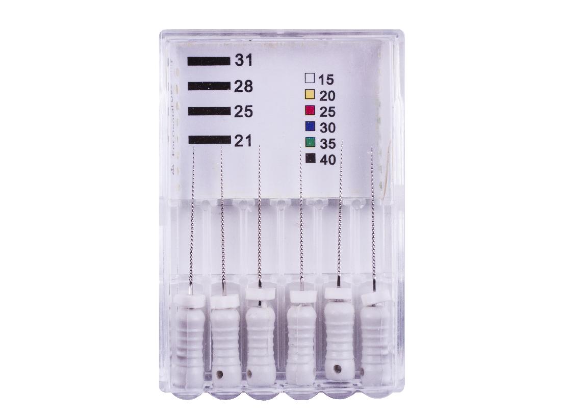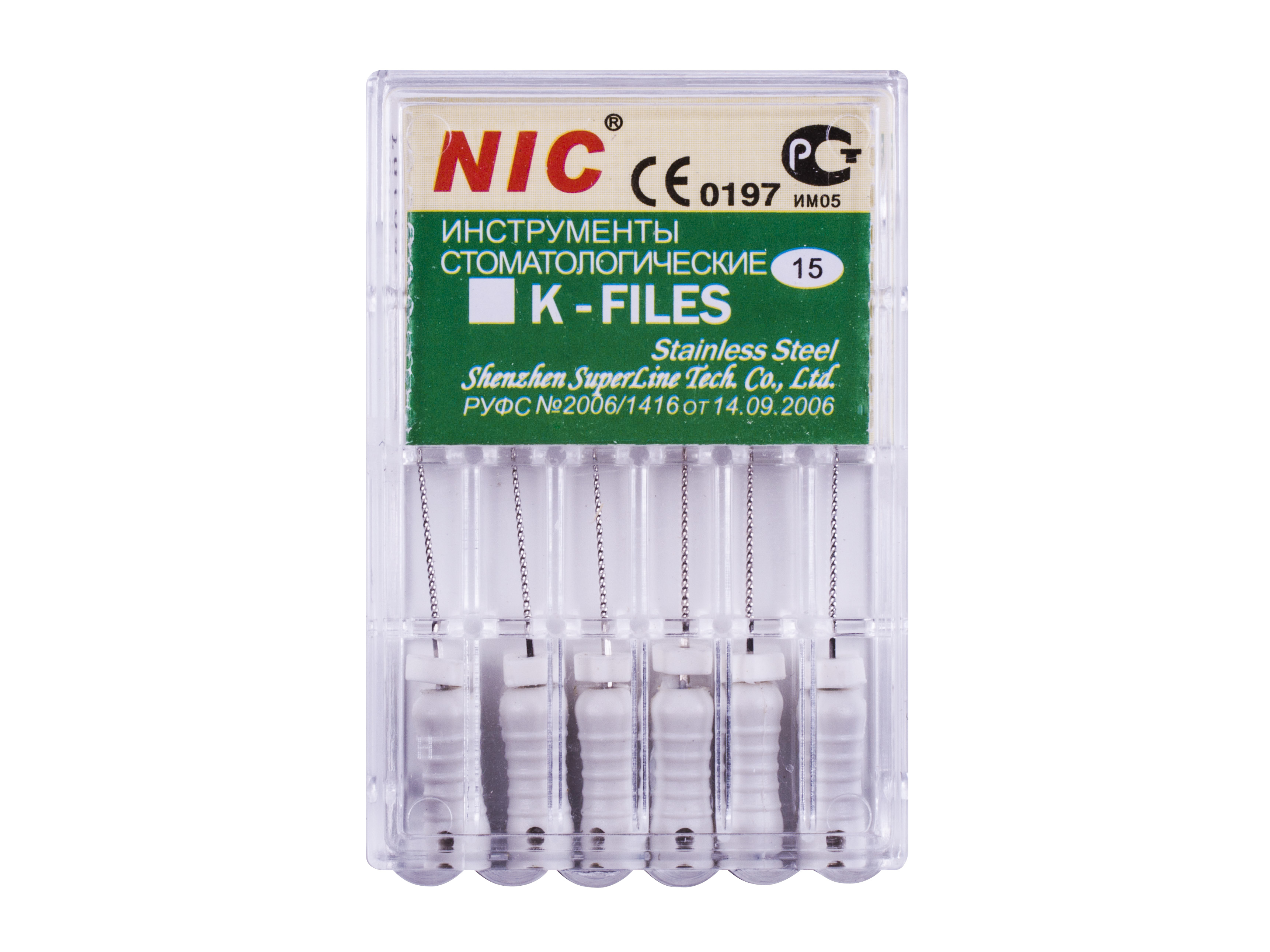 Эндодонтический инструмент из хромоникелевой стали для выполнения процедур по расширению просвета зубного канала и придания ему необходимой формы. Высокая эффективность К-Файлов обеспечивается оптимальным количеством витков спирали с режущими элементами. Файлы снабжены пластиковой ручкой и силиконовым стопором, обладают высокой гибкостью и механической прочностью.
