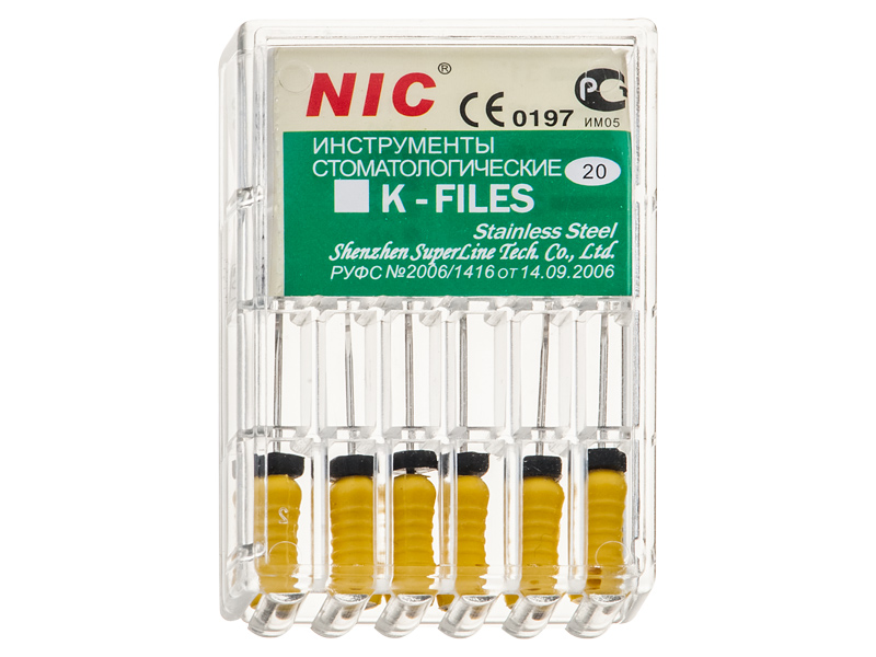 Эндодонтический инструмент из хромоникелевой стали для выполнения процедур по расширению просвета зубного канала и придания ему необходимой формы. Высокая эффективность К-Файлов обеспечивается оптимальным количеством витков спирали с режущими элементами. Файлы снабжены пластиковой ручкой и силиконовым стопором, обладают высокой гибкостью и механической прочностью.