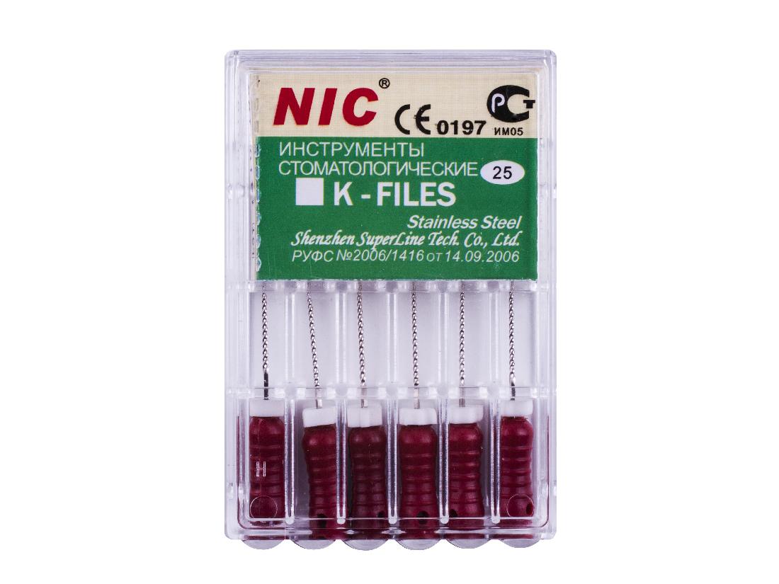 Эндодонтический инструмент из хромоникелевой стали для выполнения процедур по расширению просвета зубного канала и придания ему необходимой формы. Высокая эффективность К-Файлов обеспечивается оптимальным количеством витков спирали с режущими элементами. Файлы снабжены пластиковой ручкой и силиконовым стопором, обладают высокой гибкостью и механической прочностью.