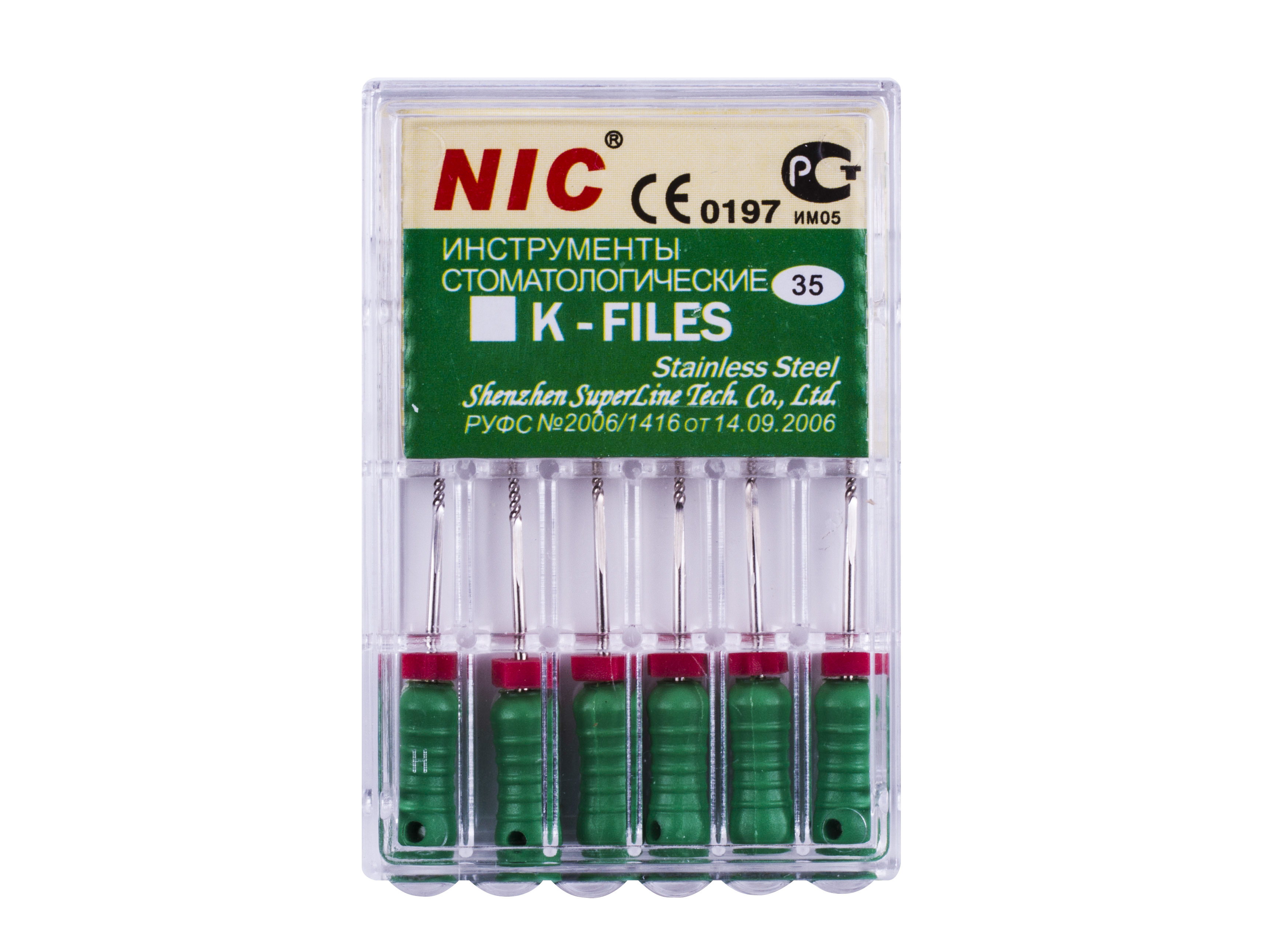 Эндодонтический инструмент из хромоникелевой стали для выполнения процедур по расширению просвета зубного канала и придания ему необходимой формы. Высокая эффективность К-Файлов обеспечивается оптимальным количеством витков спирали с режущими элементами. Файлы снабжены пластиковой ручкой и силиконовым стопором, обладают высокой гибкостью и механической прочностью.