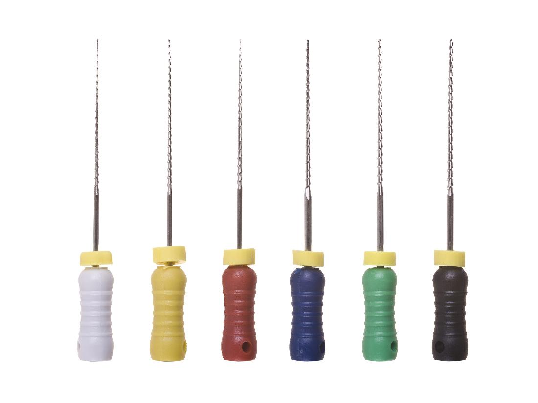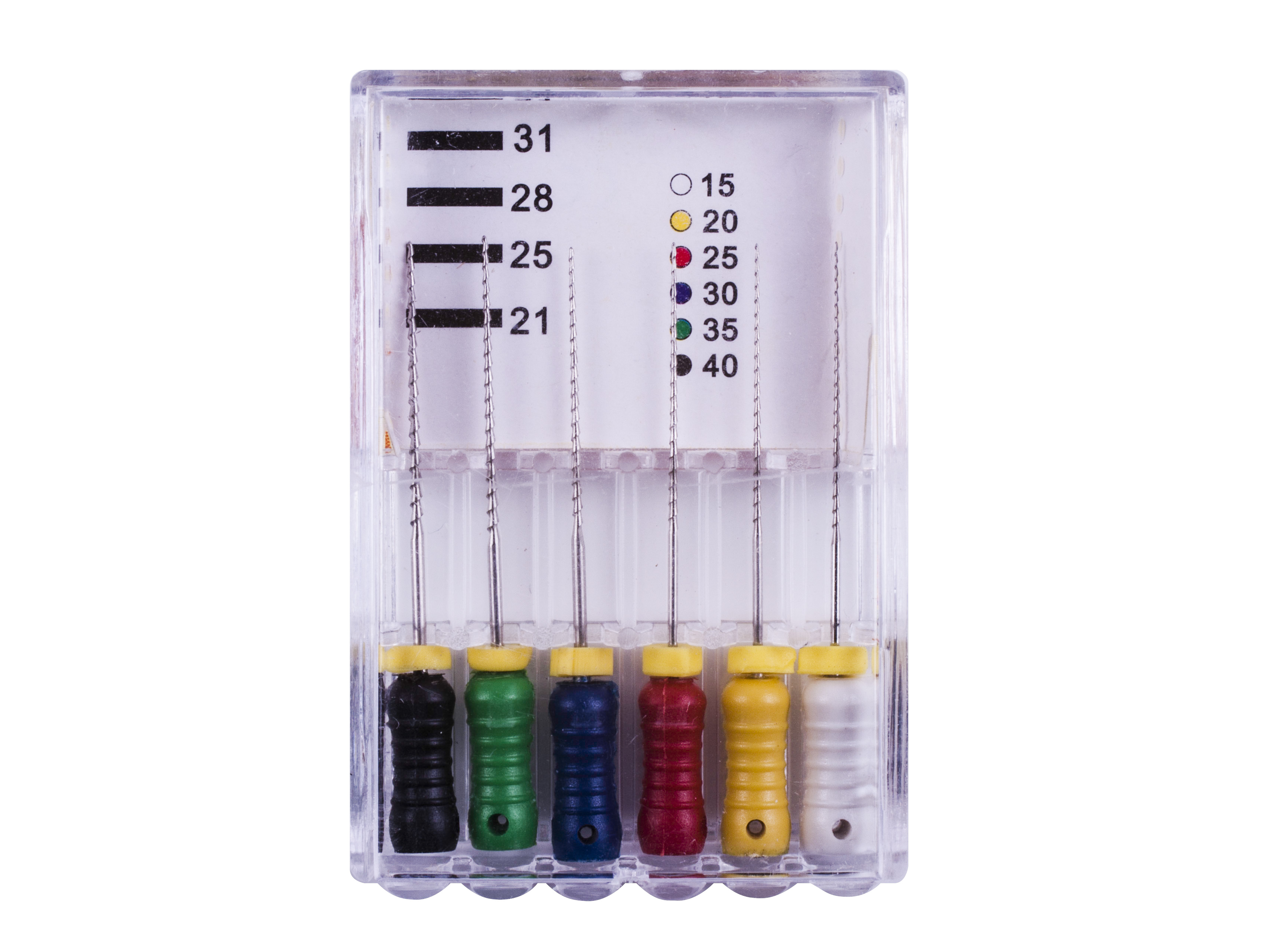 Набор эндофайлов 15/40 длиной 25 мм для выравнивания стенок зубных каналов. Материал изготовления – нержавеющая сталь. Имеет круглое сечение и спиралевидную рабочую часть. Обладает превосходной гибкостью, позволяющей обрабатывать каналы любой формы. Снабжены пластиковой ручкой и силиконовым ограничителем.