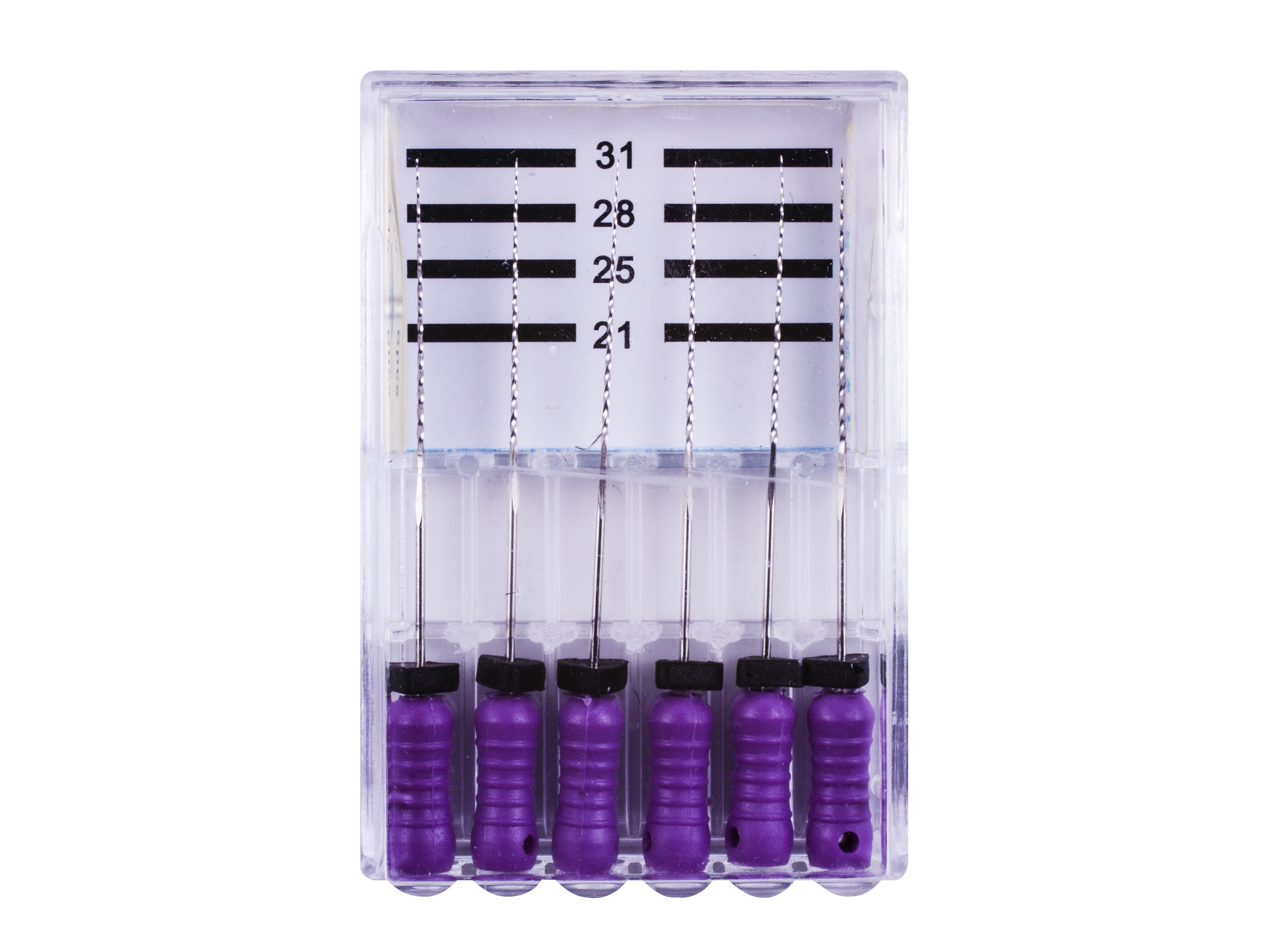 Ример 10-31 с коэффициентом заострения 7/100. Используется для обработки зубных каналов и придания им требуемой формы. Имеет треугольное сечение, обеспечивает высокую точность работы, благодаря трём точкам соприкосновения. Оснащён большим по сравнению с хвостовиком диметром лезвия. Снабжён силиконовым стопором. Цвет – пурпурный.
