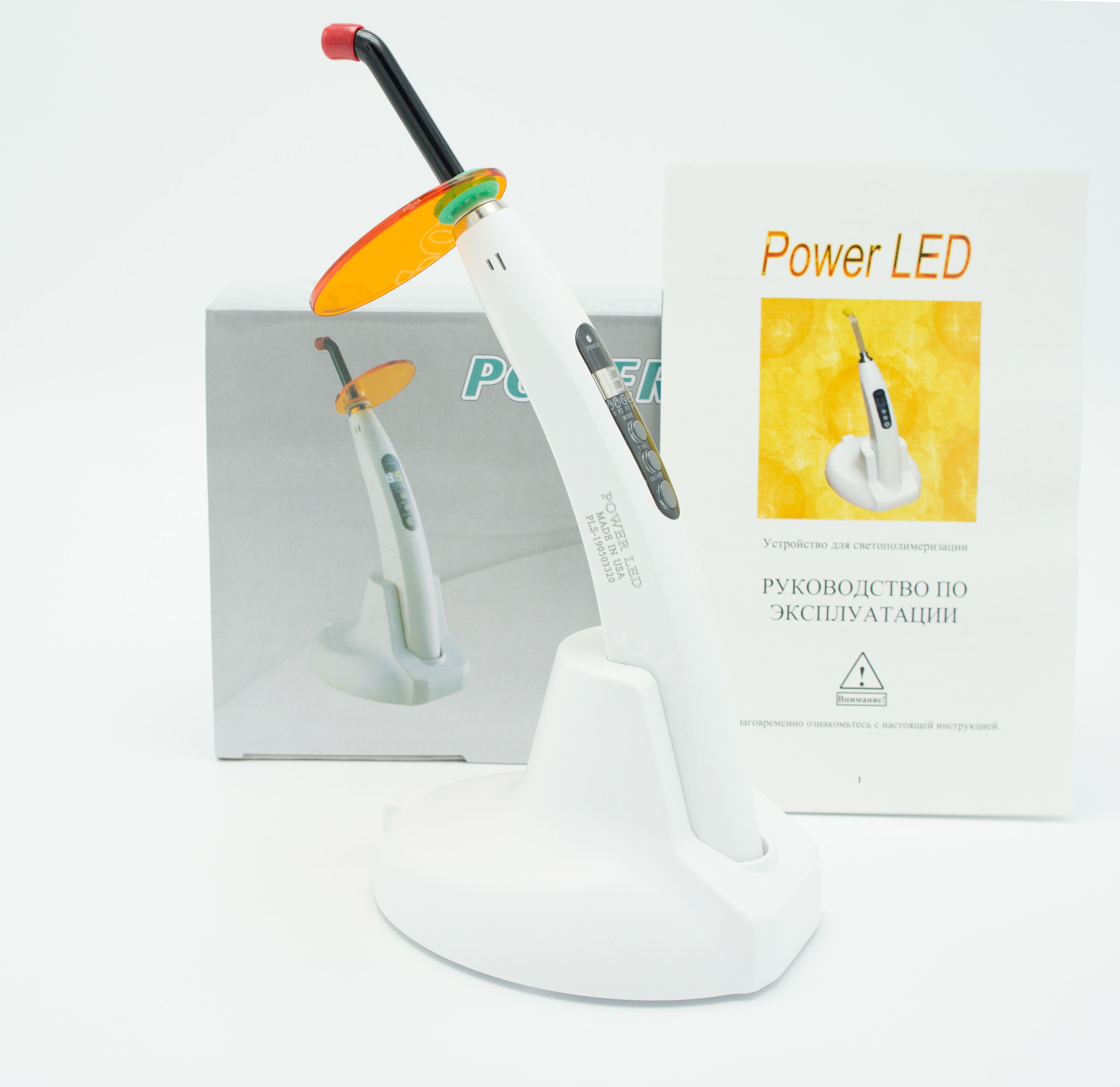 Световой прибор применяется для отверждения ортодонтических адгезивов. Оснащен направленным световым излучателем для внутренней полимеризации вещества. Источником света служит светоизлучающий диод голубого цвета и высокой интенсивности. Этот диапазон является наилучшим для камфарных хининсодержащих материалов.