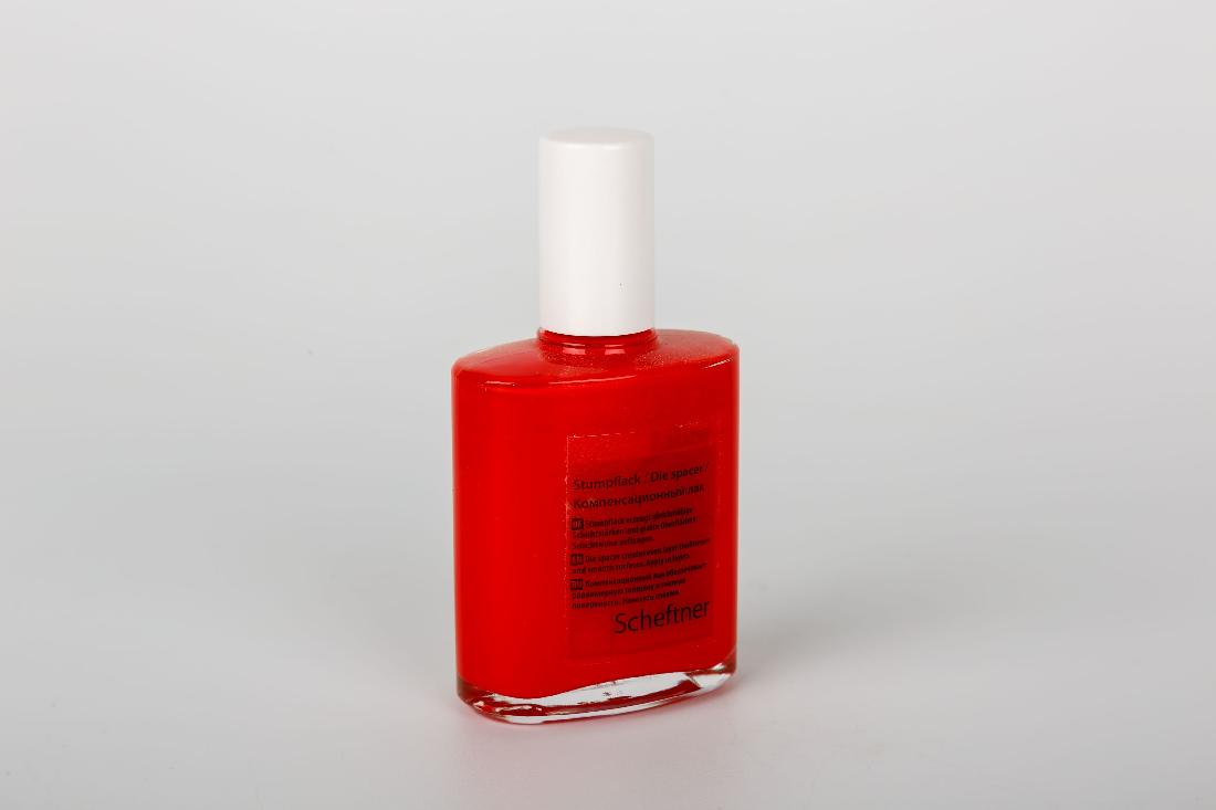 Штумпфлак красный применяется для компенсации зазора между зубной культей и коронкой. Используется для нанесения покрытия на поверхности из гипса или кавиплан-воска. Достоинства лака: малое время высыхания, обладает оптимальной вязкостью. Один шар лака – 8 мкм.