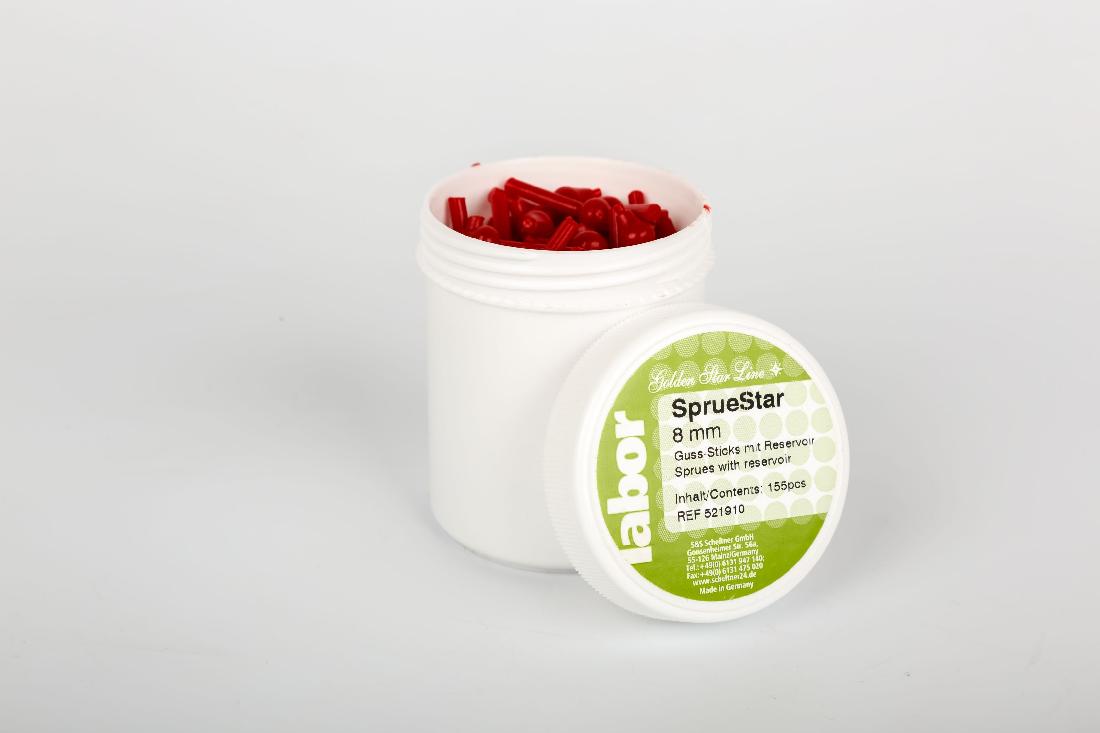 Литник с резервуаром для плавления имеющим форму груши. Используется для литьевых работ с применением металлов драгоценной группы. Позволяет производить литьё без образования усадочных раковин благодаря грушевидной форме канала для подачи металла, что уменьшает количество завихрений. Диаметр литника – 8 мм.