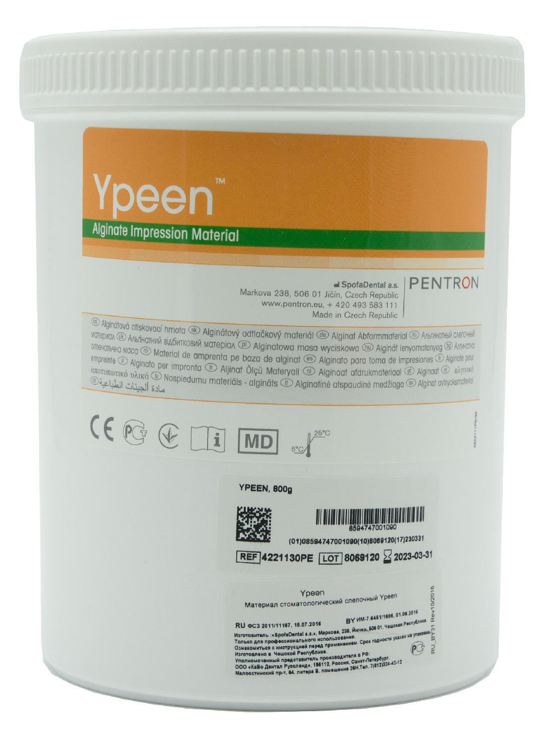 Ипеен применяется для получения оттиска при производстве зубных протезов. Ипеен представляет собой альгинатную оттискную массу, полностью воспроизводящую мельчайшие детали. Быстрота и легкость замешивания и высокая скорость затвердевания массы делает ее удобной в применении. YPEEN