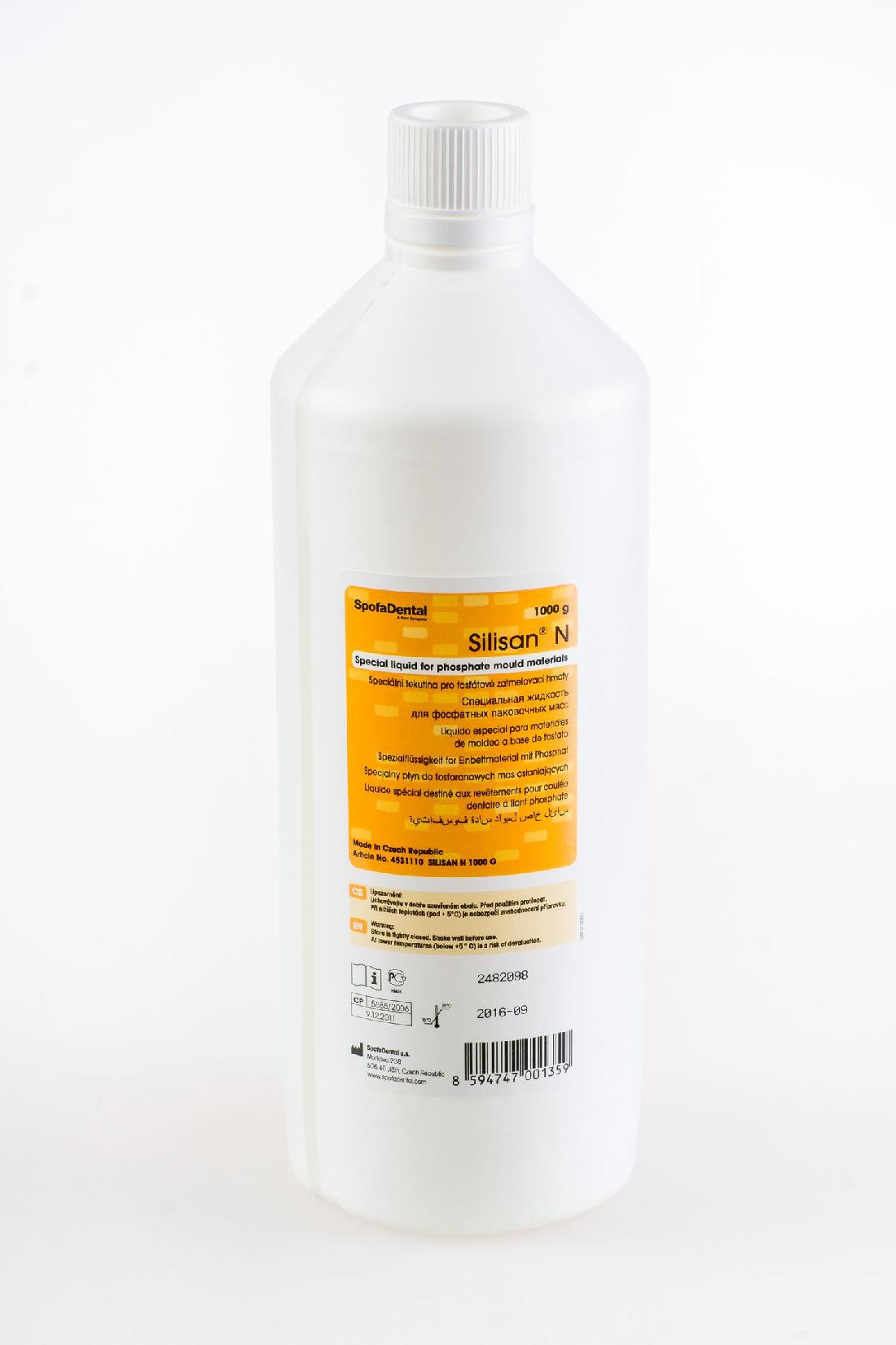 Коллоидная жидкость с кремниевой кислотой. При смешивании с формовочными массами Silikan или Silikan Universal образует формовочную массу высокой прочности с необходимым объемным расширением. Улучшает качество формовочных масс на основе фосфатов. Выбор концентрации Силисан N будет зависеть от типа отливаемого сплава.