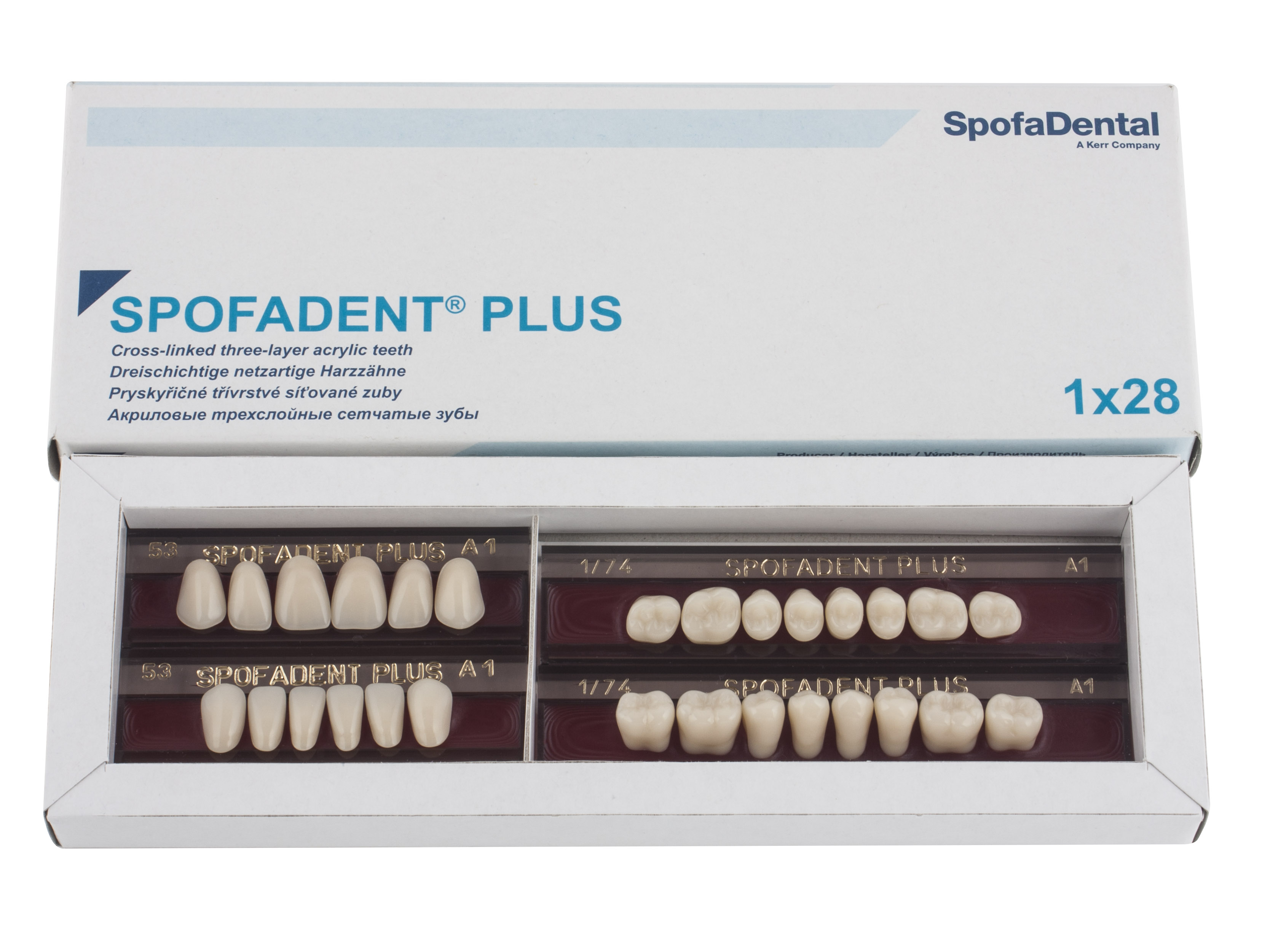 Акриловые зубы - цвет А1, для изготовления зубных протезов съёмного типа. Производятся из сополимеров метилметакрилата. К достоинствам пластмассовых зубов Спофадент Плюс можно отнести высокую цветостабильность, химическую стойкость, устойчивость к истиранию. Комплект – 28 зубов.