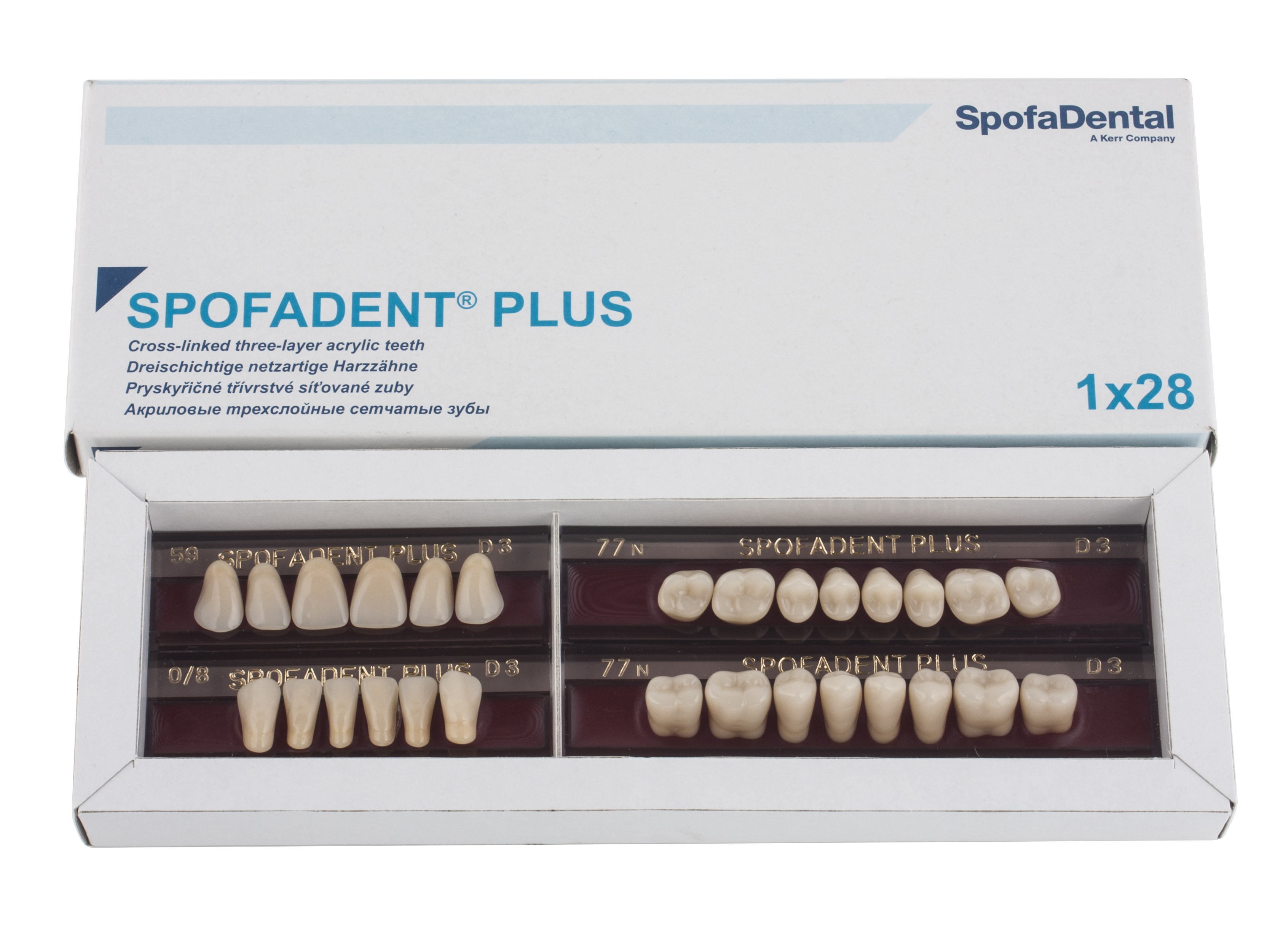 Акриловые зубы - цвет D3, для изготовления зубных протезов съёмного типа. Производятся из сополимеров метилметакрилата. К достоинствам пластмассовых зубов Спофадент Плюс можно отнести высокую цветостабильность, химическую стойкость, устойчивость к истиранию. Комплект – 28 зубов.