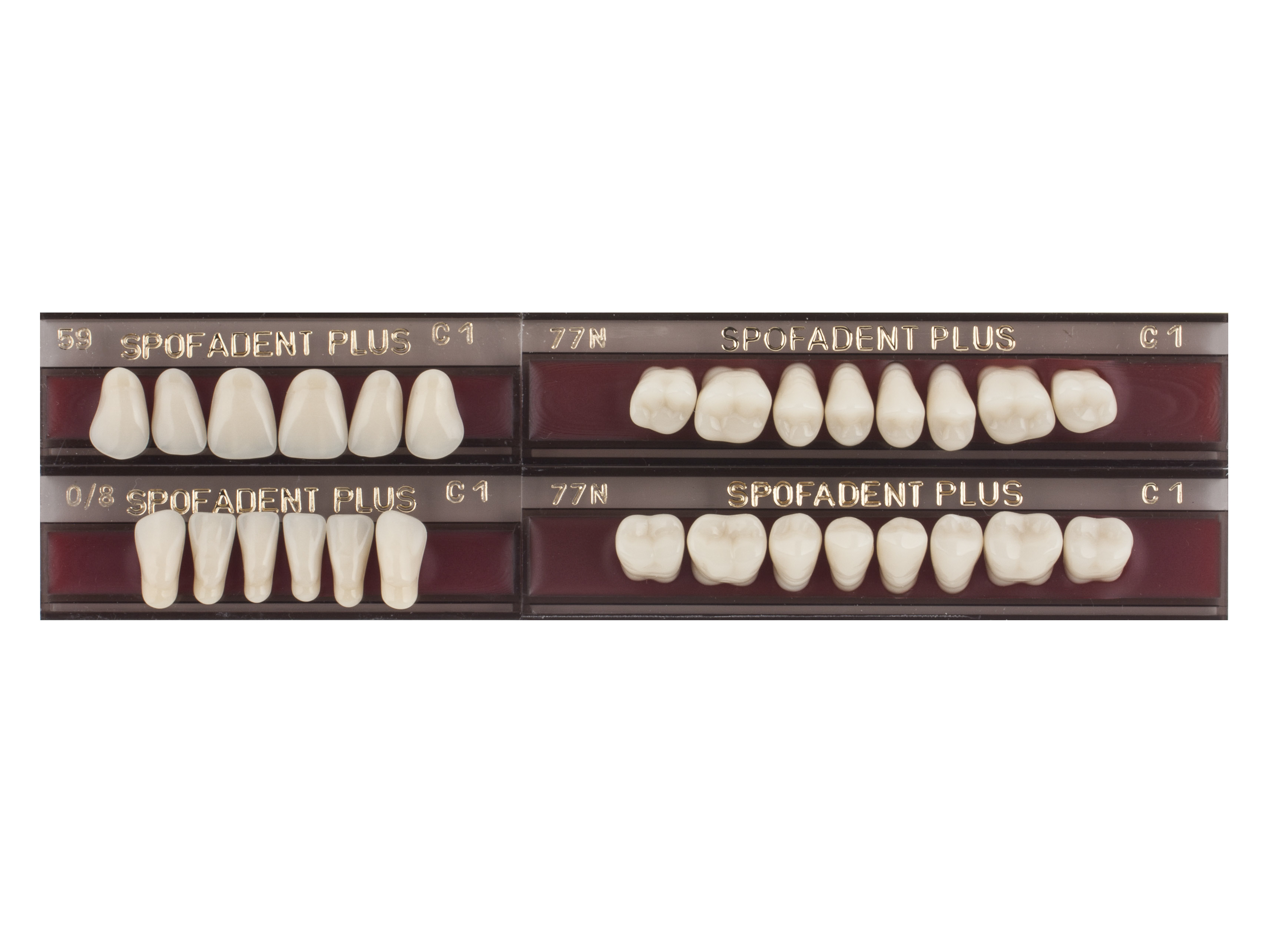 Акриловые зубы - цвет С1, для изготовления зубных протезов съёмного типа. Производятся из сополимеров метилметакрилата. К достоинствам пластмассовых зубов Спофадент Плюс можно отнести высокую цветостабильность, химическую стойкость, устойчивость к истиранию. Комплект – 28 зубов.