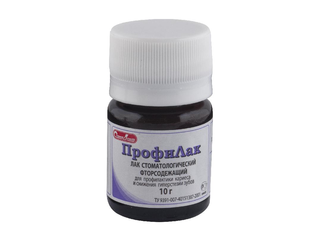 Фторсодержащий материал Профилак является клейкой жидкостью с ароматом хвои и сладковатым привкусом. Состоит на 5% из фторида натрия. Стимулирует реминерализующие функции слюны, снижая распространение микрофлоры бляшки зубов. Материал имеет антимикробные свойства и является профилактическим средством.