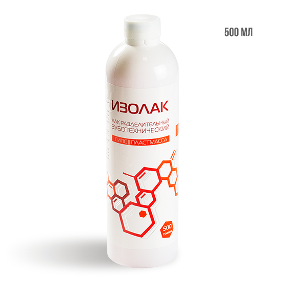 Лак применяют в стоматологии во избежание сращивания полимерных материалов с гипсом. Образовывает пленку на поверхности гипса, выполняя разделительную функцию. Способствует закрытию микропор гипсовой модели. Минимальное время до образования разделительной пленки – 5 мин. Лак в виде жидкого сиропа, окрашенного в розовый цвет.