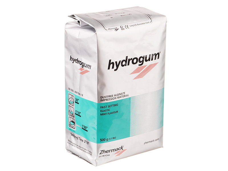 Альгинат Hydrogum обладает сбалансированными показателями вязкости и эластичности. Может использоваться в целом ряде клинических ситуаций. Для материала характерны быстрое схватывание и хорошая тиксотропность. Гидрогум имеет зелёный цвет и мятный аромат.
