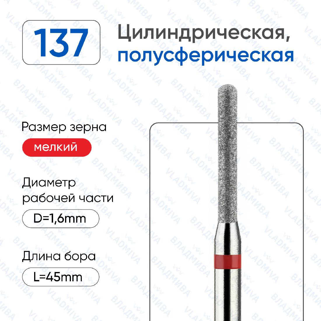 Бор алмазный (10шт) цилиндрич. полусфер. ПН 856.104.137.120.016 красный