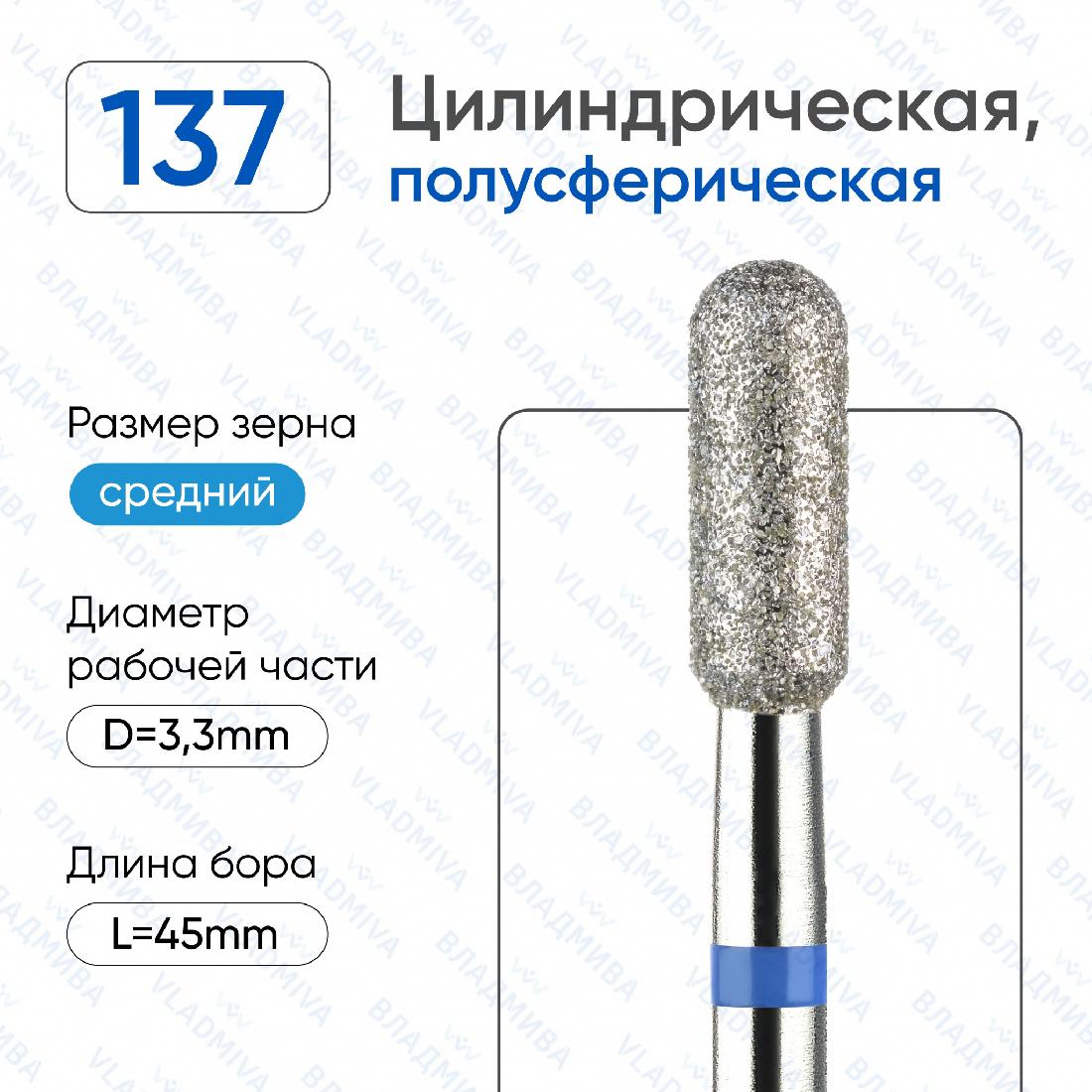 Бор алмазный (10шт) цилиндрич. полусфер. ПН 866.104.137.080.033 синий