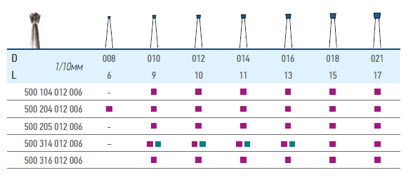 Высокоточный отцентрированный бор ТВС с острой режущей кромкой, применяется для обработки твердых тканей зуба, пломбировочного материала и металлических протезных элементов. Инструмент характеризуется отсутствием вибраций и малой температурой трения. Твердый материал рабочей части бора дает возможность эффективно применять его с турбинным наконечником.