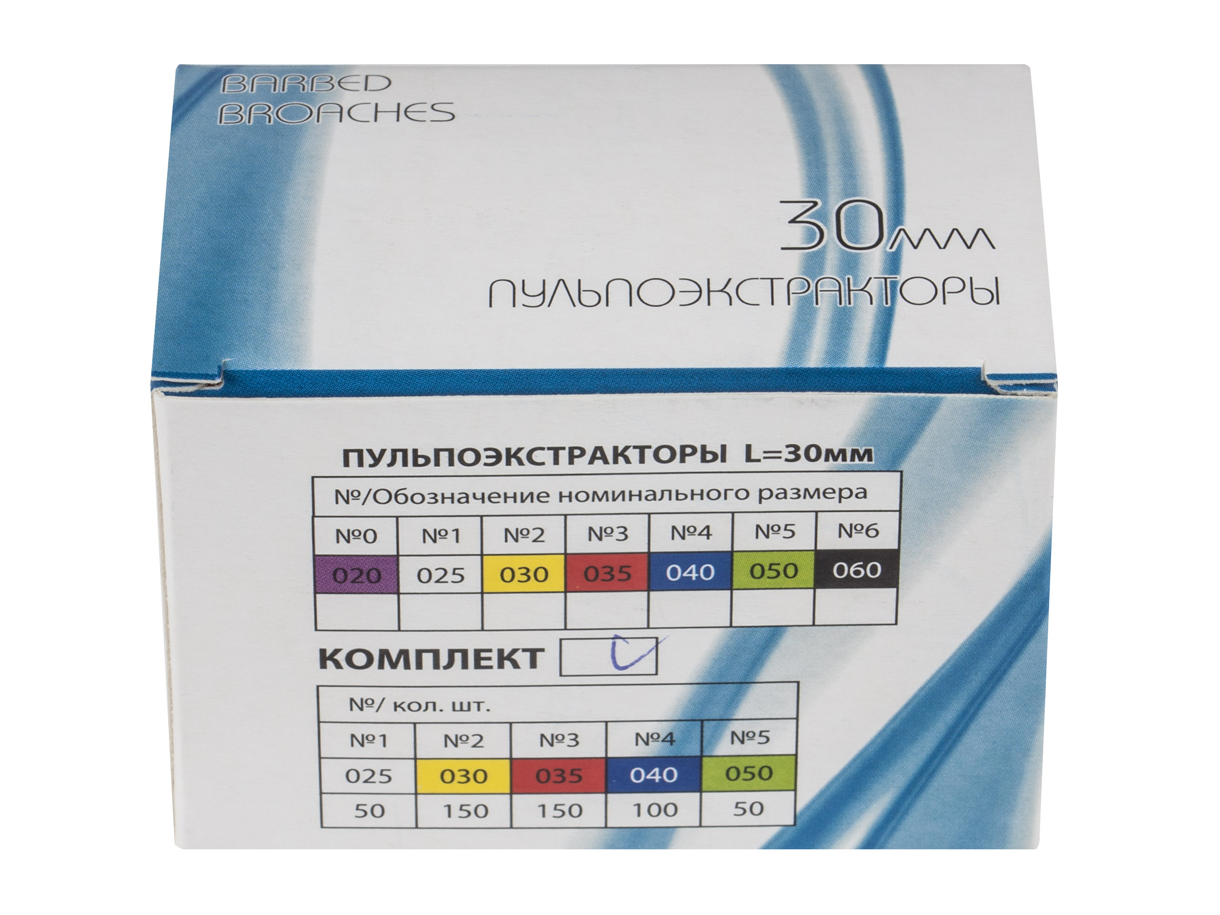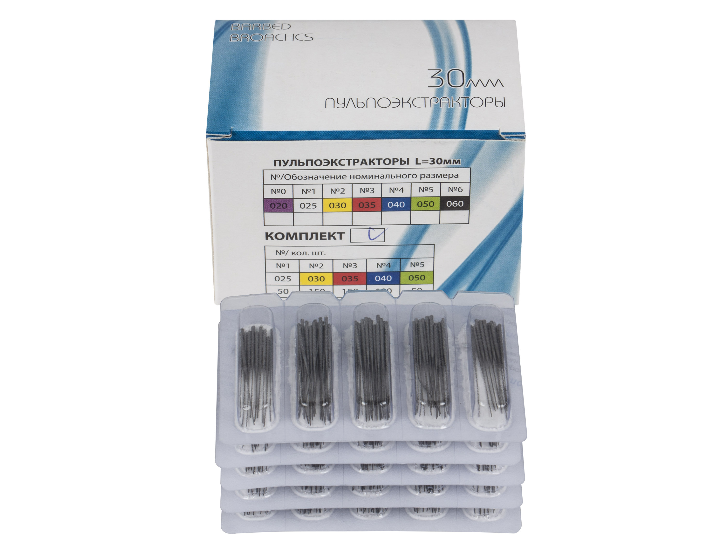 Пульпоэкстракторы служат для удаления пульпы и ее частей из корневого канала. Представляет собой стержень с расположенными по всей поверхности зубцами, которые направлены в сторону ручки. Такой принцип расположения зубцов обеспечивает легкую вводимость инструмента в канал и полное удаление пульпы при выведении.