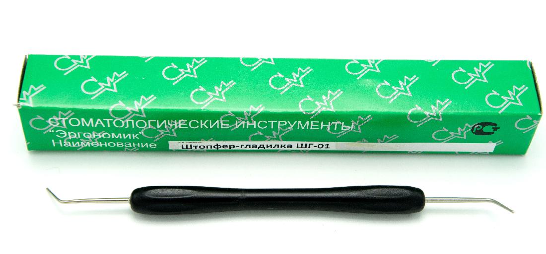 Рабочая часть нержавеющая сталь, ручка из термостойкого пластика, улучшенная эргономика, диаметр ручки 11 мм, длина ручки 105 мм, общая длина 170 мм, штопфер (шаровидный), гладилка вертикальная. Штопфер диаметр 1 мм, гладилка вертикальная 1 мм (возможна стерилизация паровым методом, воздушным методом, стерилизация растворами химических средств, в соответствии с режимами МУ-287-113)