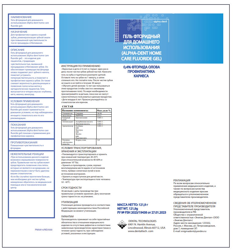 АЛЬФА-ДЕНТ Fluoride gel (фторгель для домашнего использования) МЯТА (121,9 г) ДенталТехнолоджи