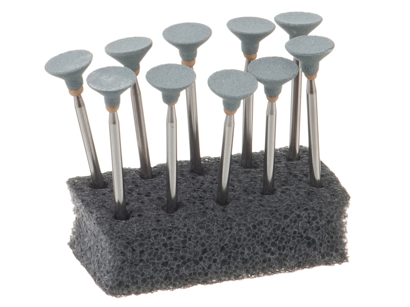 Шлифовальные головки с выемкой для прямого наконечника ГУВ 10, применяемые для обработки естественных зубов. Изготавливаются из абразивного материала с керамическим связующим. В наборе – 10 головок одного типоразмера.