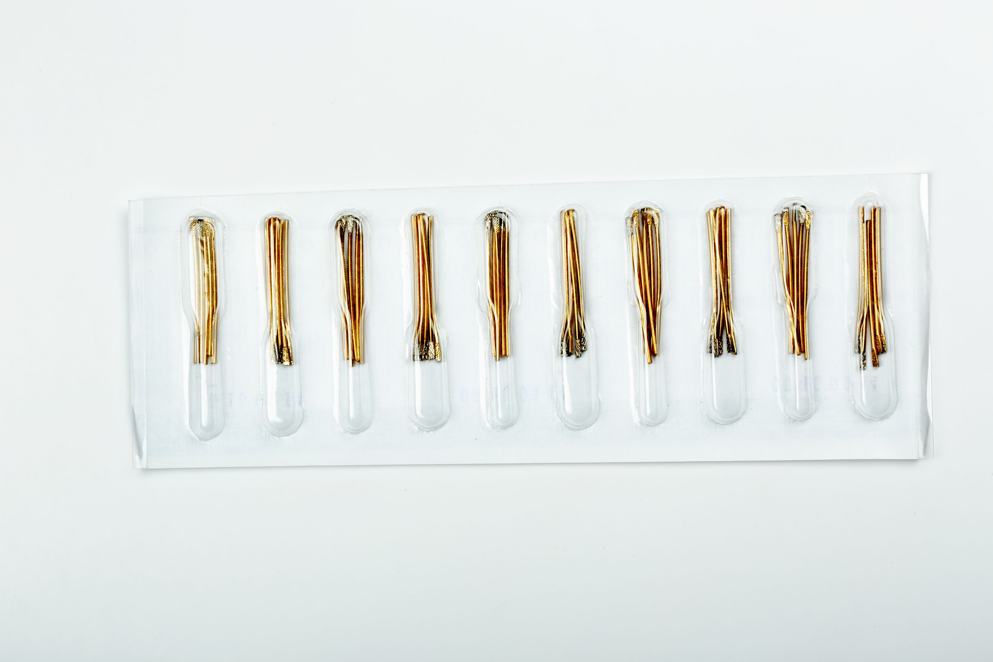 Кламмер 1 мм в диаметре, длиной 32 мм имеет защитное покрытие из нитрида титана. Он является элементом вставного протеза, который захватывает примерно 65% окружности естественного зуба. Назначение кламмера – обеспечение прочной фиксации протеза, его устойчивости и, передачи жевательного давления.