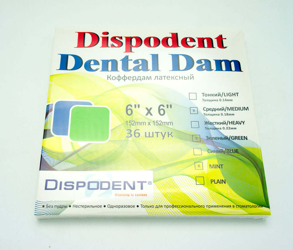 Резиновая завеса д/коффердама DentalDams 152мм*152мм 36 шт (зелен/мята)