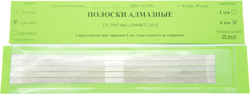 Штрипсы АГРИ метал (полоски алмазные зеленый) 5шт 4мм средний