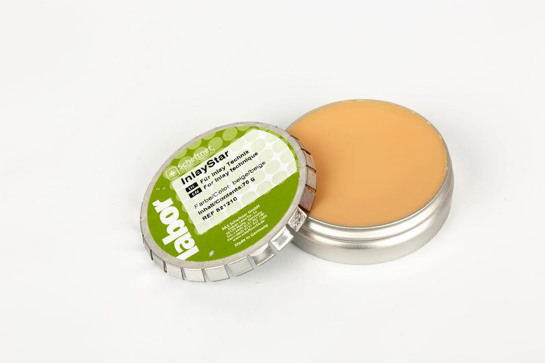 Воск Inlay Star, имея высокие технические показатели, разработан специально для проведения «инлейн-техники». Во время работы воск практически не поддается сжатию, сохраняя свою первичную форму и объемы, точно передает скашивание краевых частей полости. Широко используется для создания пресс-керамики, так как не имеет опакизированных составляющих. Оптимальная температура для работы с воском составляет 53°С. Воск бежевого цвета в 70 г упаковке, REF 521210.