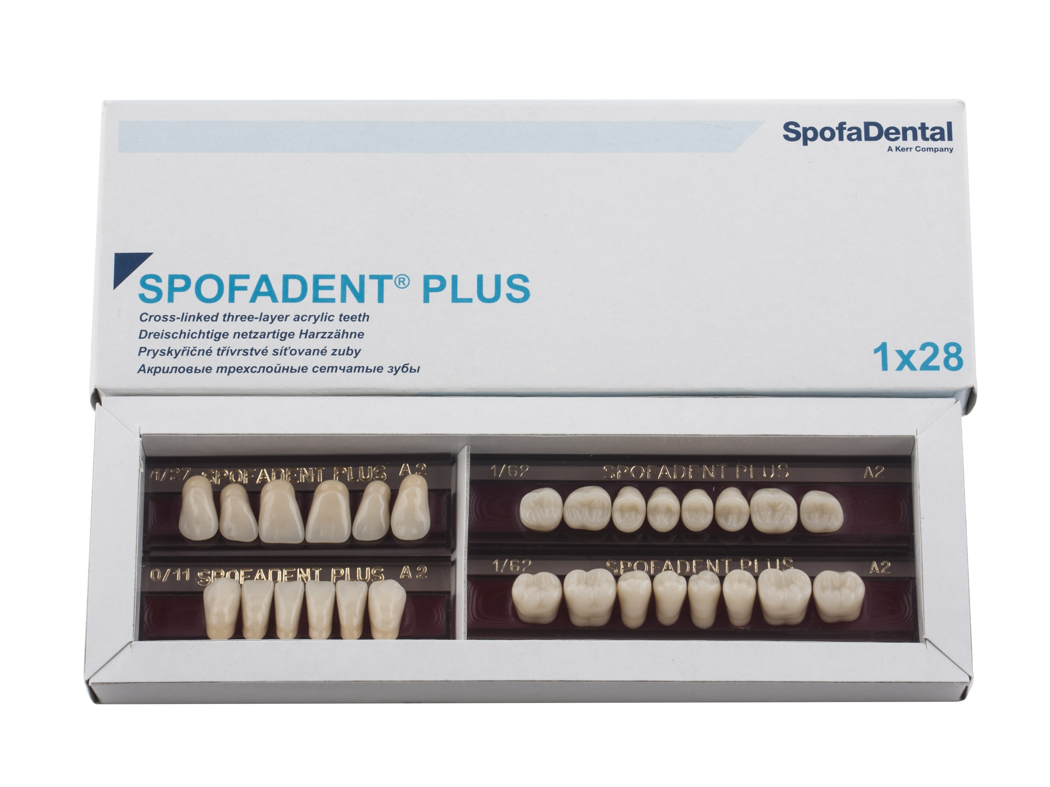 Акриловые зубы - цвет А2, для изготовления зубных протезов съёмного типа. Производятся из сополимеров метилметакрилата. К достоинствам пластмассовых зубов Спофадент Плюс можно отнести высокую цветостабильность, химическую стойкость, устойчивость к истиранию. Комплект – 28 зубов.