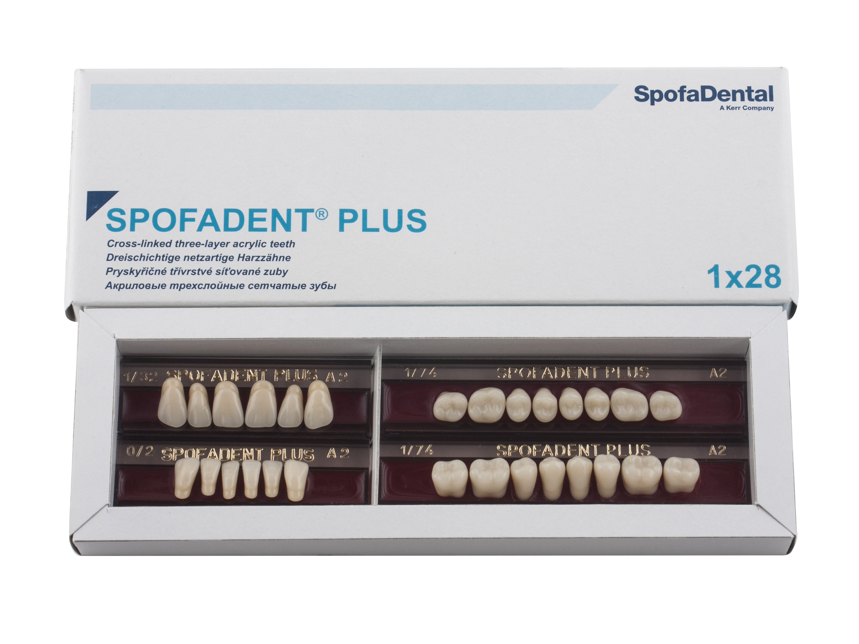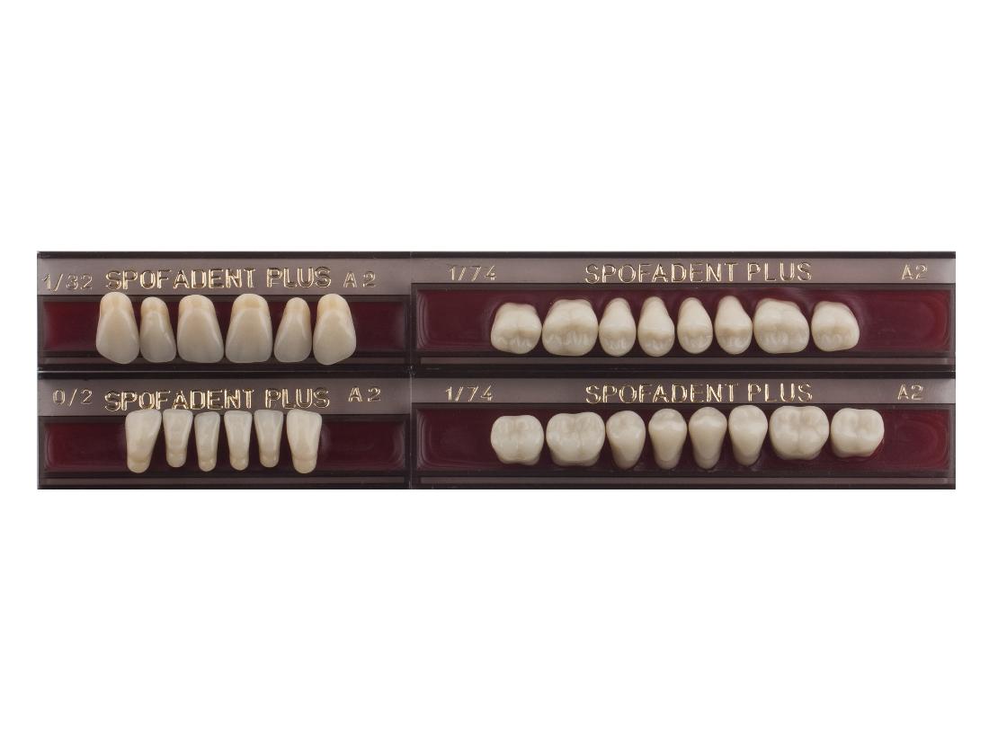 Акриловые зубы - цвет А2, для изготовления зубных протезов съёмного типа. Производятся из сополимеров метилметакрилата. К достоинствам пластмассовых зубов Спофадент Плюс можно отнести высокую цветостабильность, химическую стойкость, устойчивость к истиранию. Комплект – 28 зубов.
