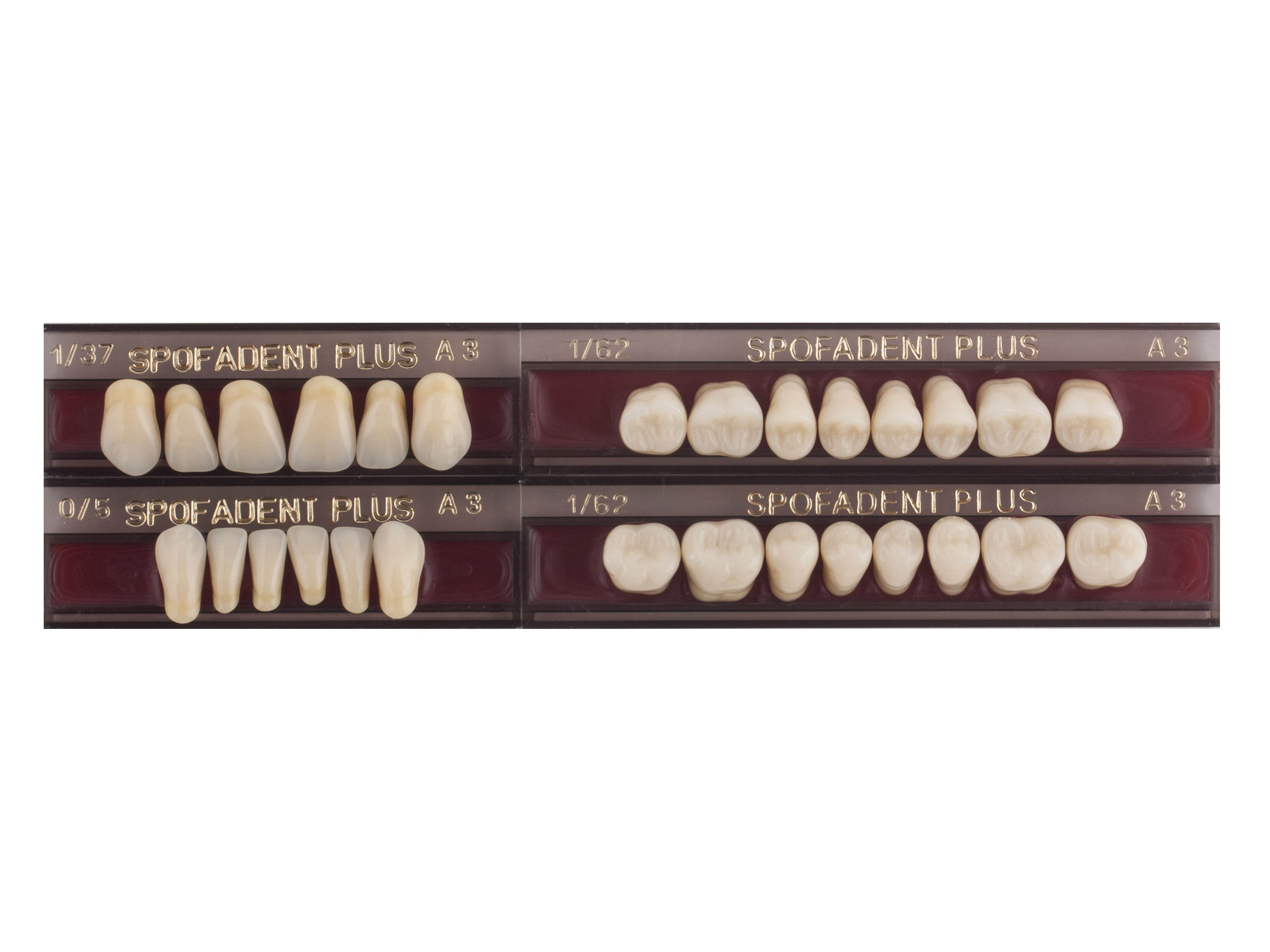 Акриловые зубы - цвет А3, для изготовления зубных протезов съёмного типа. Производятся из сополимеров метилметакрилата. К достоинствам пластмассовых зубов Спофадент Плюс можно отнести высокую цветостабильность, химическую стойкость, устойчивость к истиранию. Комплект – 28 зубов.