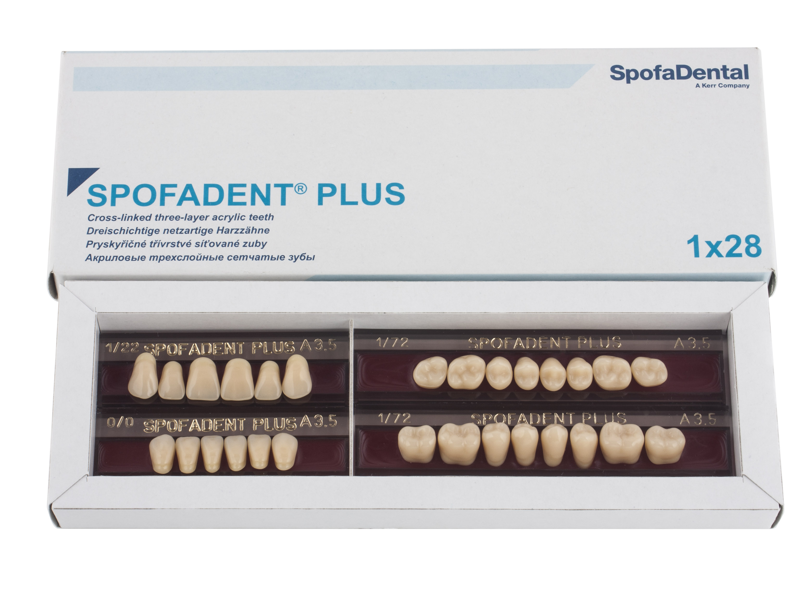 Акриловые зубы - цвет А3,5 для изготовления зубных протезов съёмного типа. Производятся из сополимеров метилметакрилата. К достоинствам пластмассовых зубов Спофадент Плюс можно отнести высокую цветостабильность, химическую стойкость, устойчивость к истиранию. Комплект – 28 зубов.