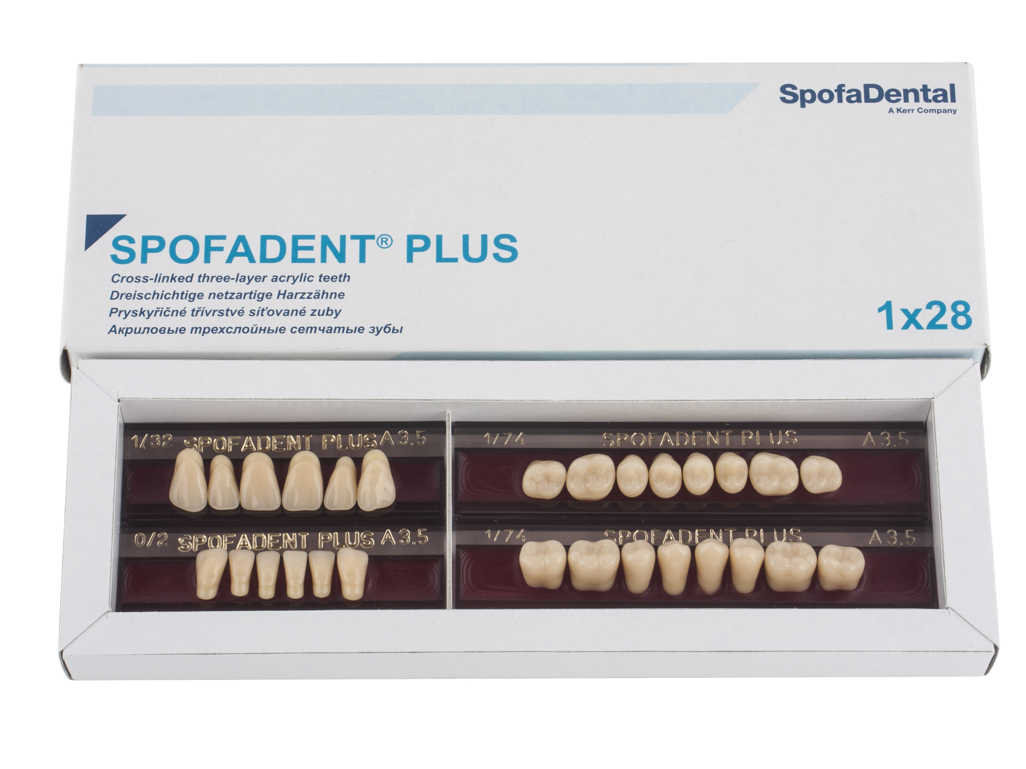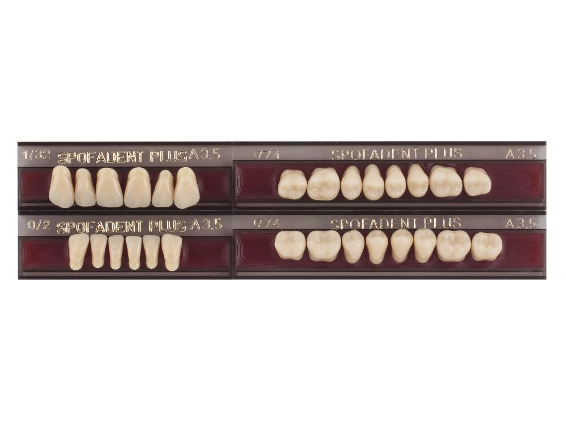 Акриловые зубы - цвет А3,5 для изготовления зубных протезов съёмного типа. Производятся из сополимеров метилметакрилата. К достоинствам пластмассовых зубов Спофадент Плюс можно отнести высокую цветостабильность, химическую стойкость, устойчивость к истиранию. Комплект – 28 зубов.