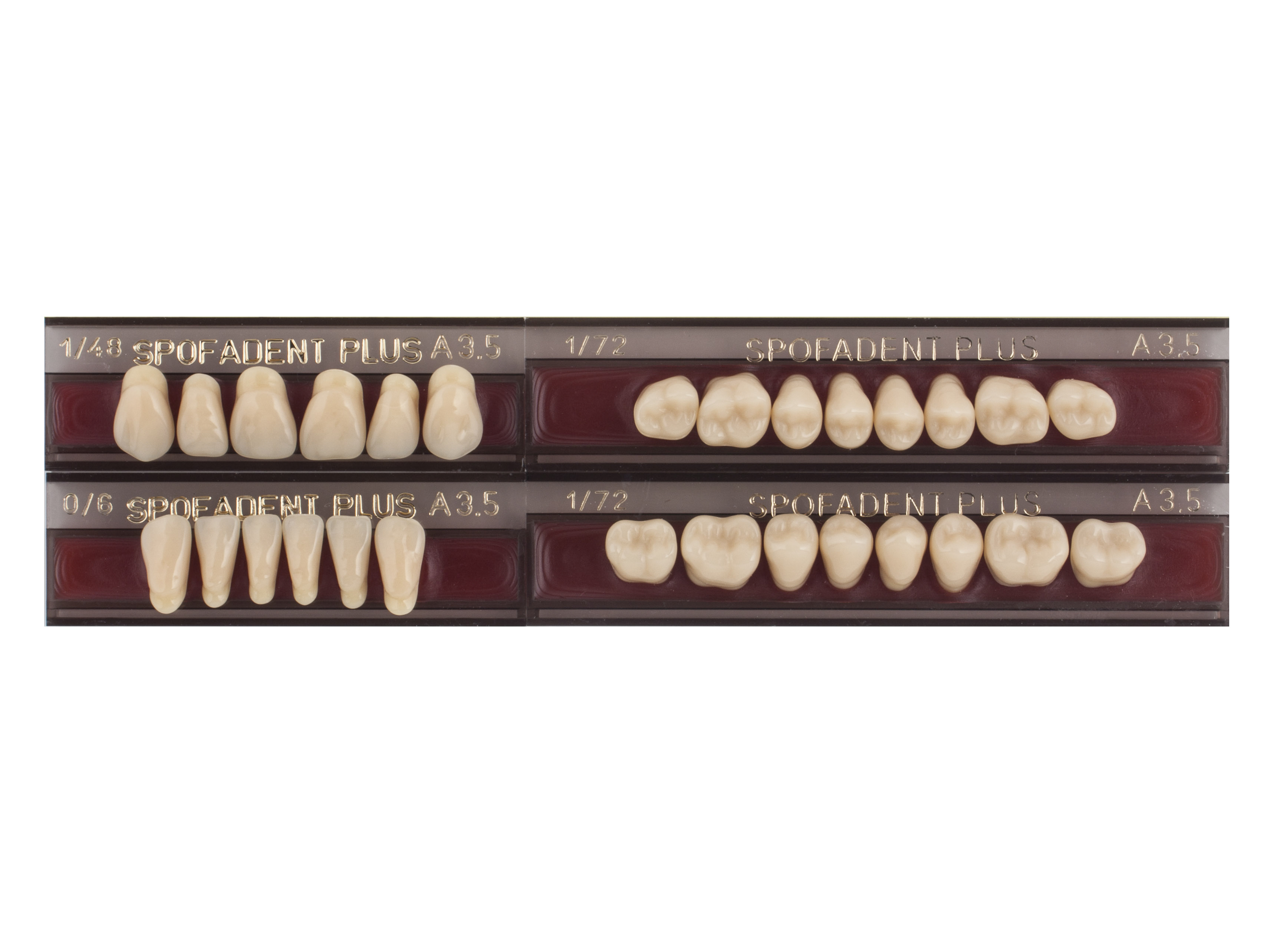 Акриловые зубы - цвет А3,5 для изготовления зубных протезов съёмного типа. Производятся из сополимеров метилметакрилата. К достоинствам пластмассовых зубов Спофадент Плюс можно отнести высокую цветостабильность, химическую стойкость, устойчивость к истиранию. Комплект – 28 зубов.