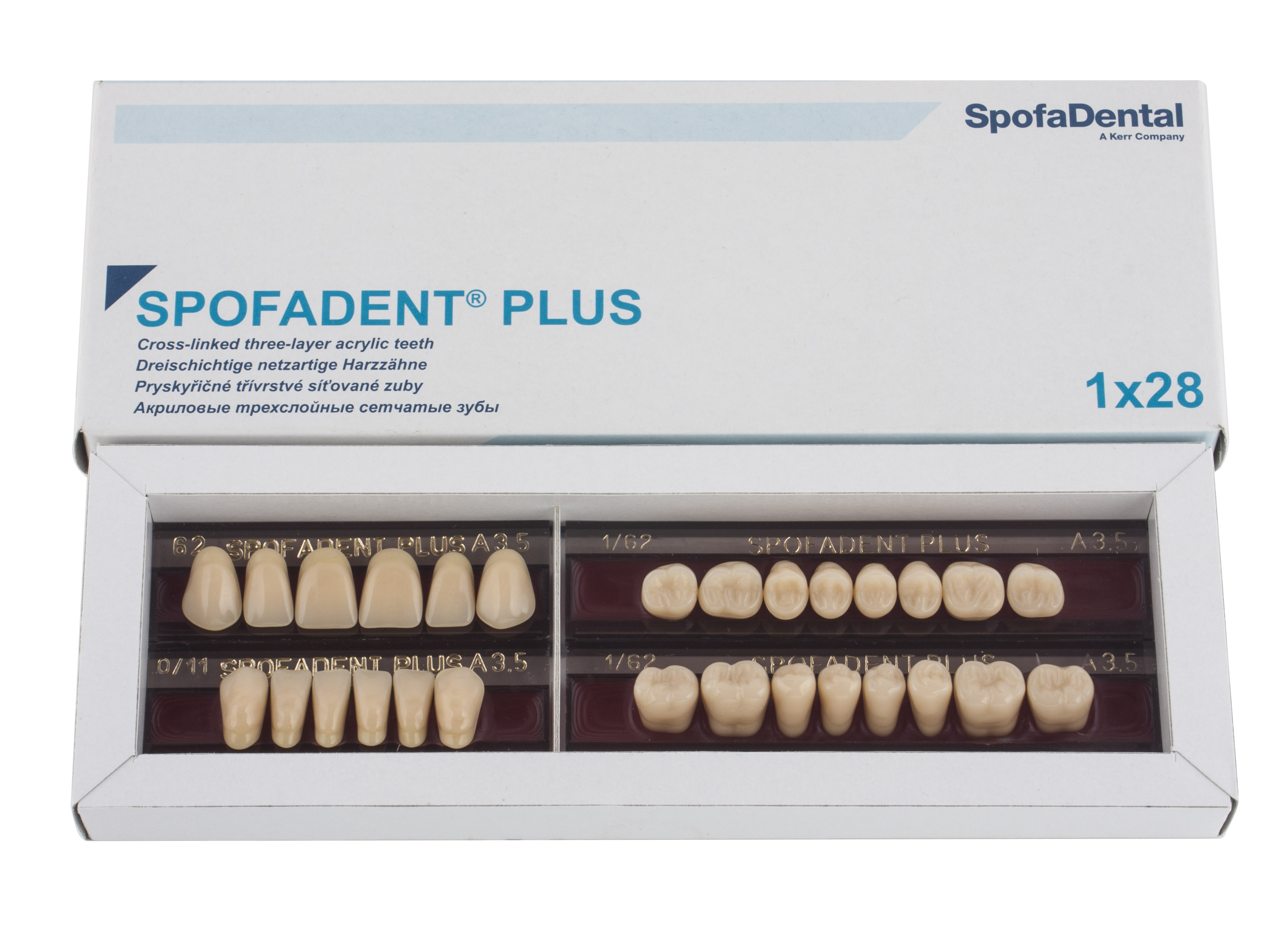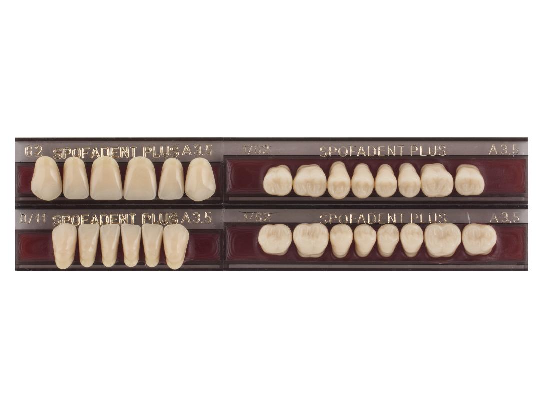 Акриловые зубы - цвет А3,5 для изготовления зубных протезов съёмного типа. Производятся из сополимеров метилметакрилата. К достоинствам пластмассовых зубов Спофадент Плюс можно отнести высокую цветостабильность, химическую стойкость, устойчивость к истиранию. Комплект – 28 зубов.