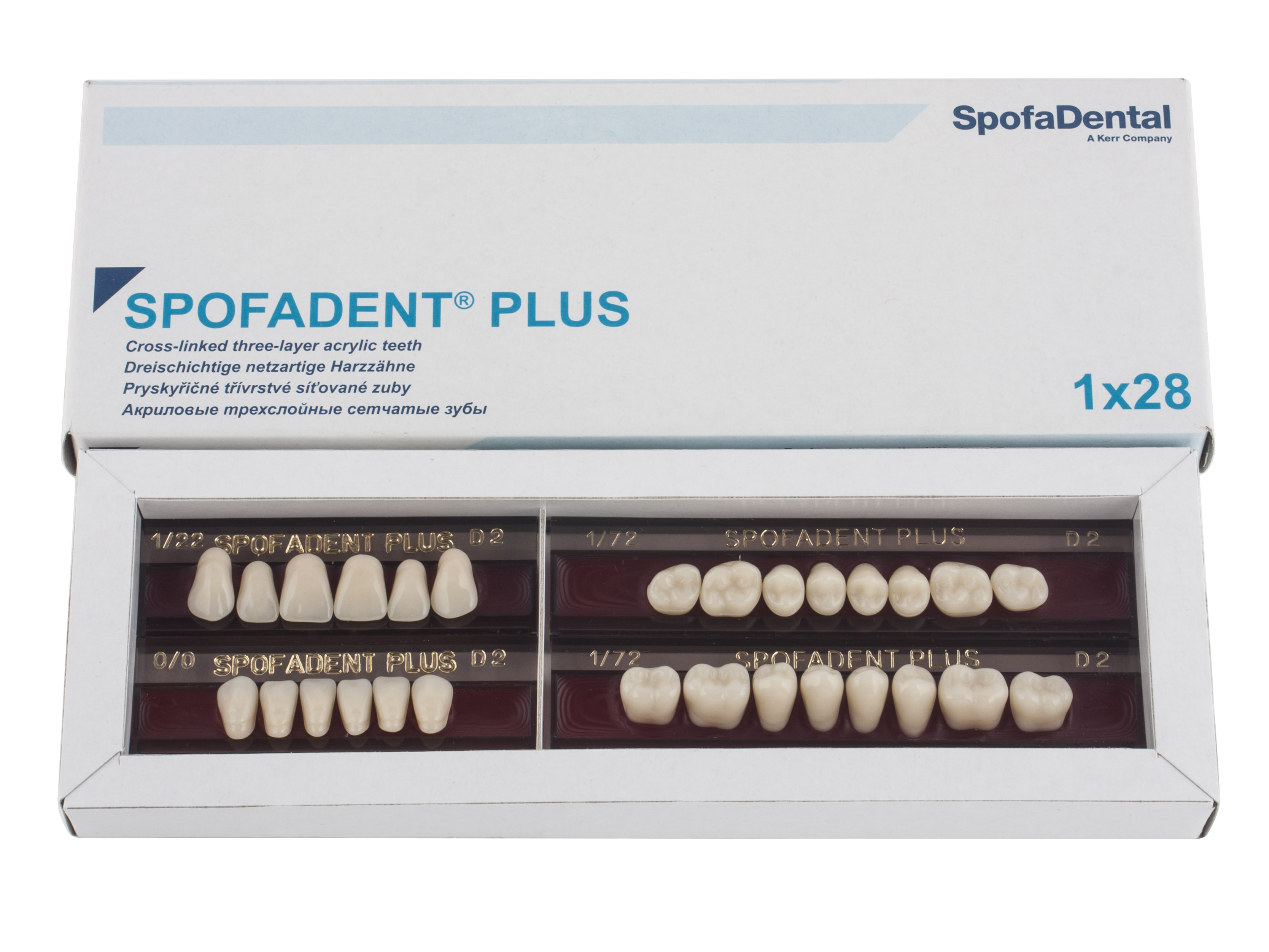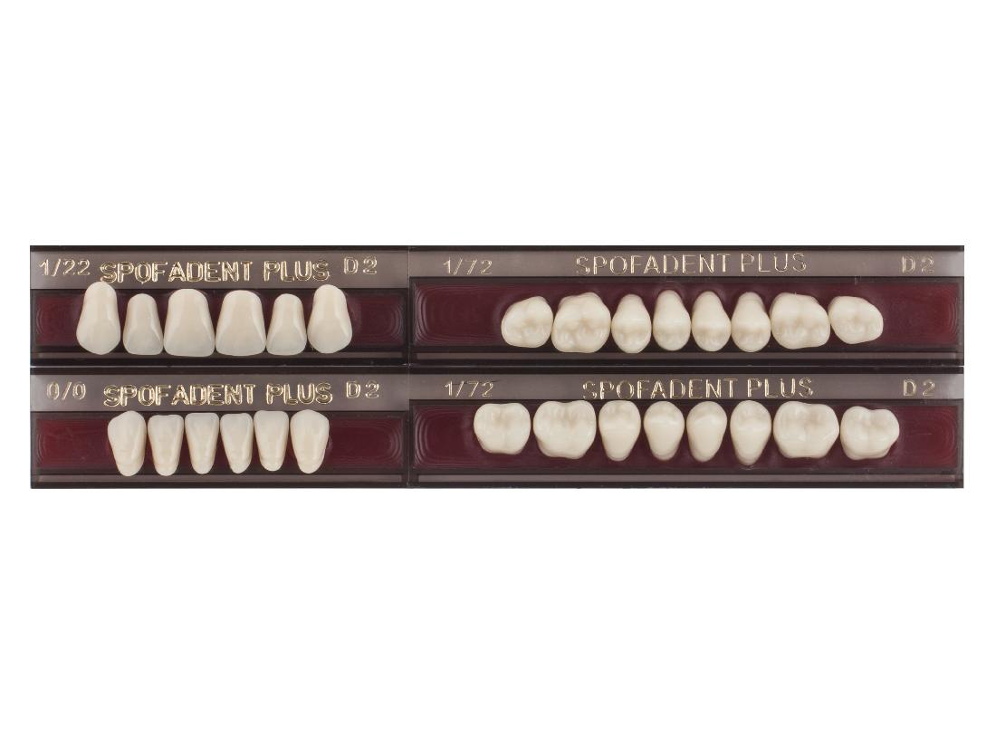 Акриловые зубы - цвет D2, для изготовления зубных протезов съёмного типа. Производятся из сополимеров метилметакрилата. К достоинствам пластмассовых зубов Спофадент Плюс можно отнести высокую цветостабильность, химическую стойкость, устойчивость к истиранию. Комплект – 28 зубов.