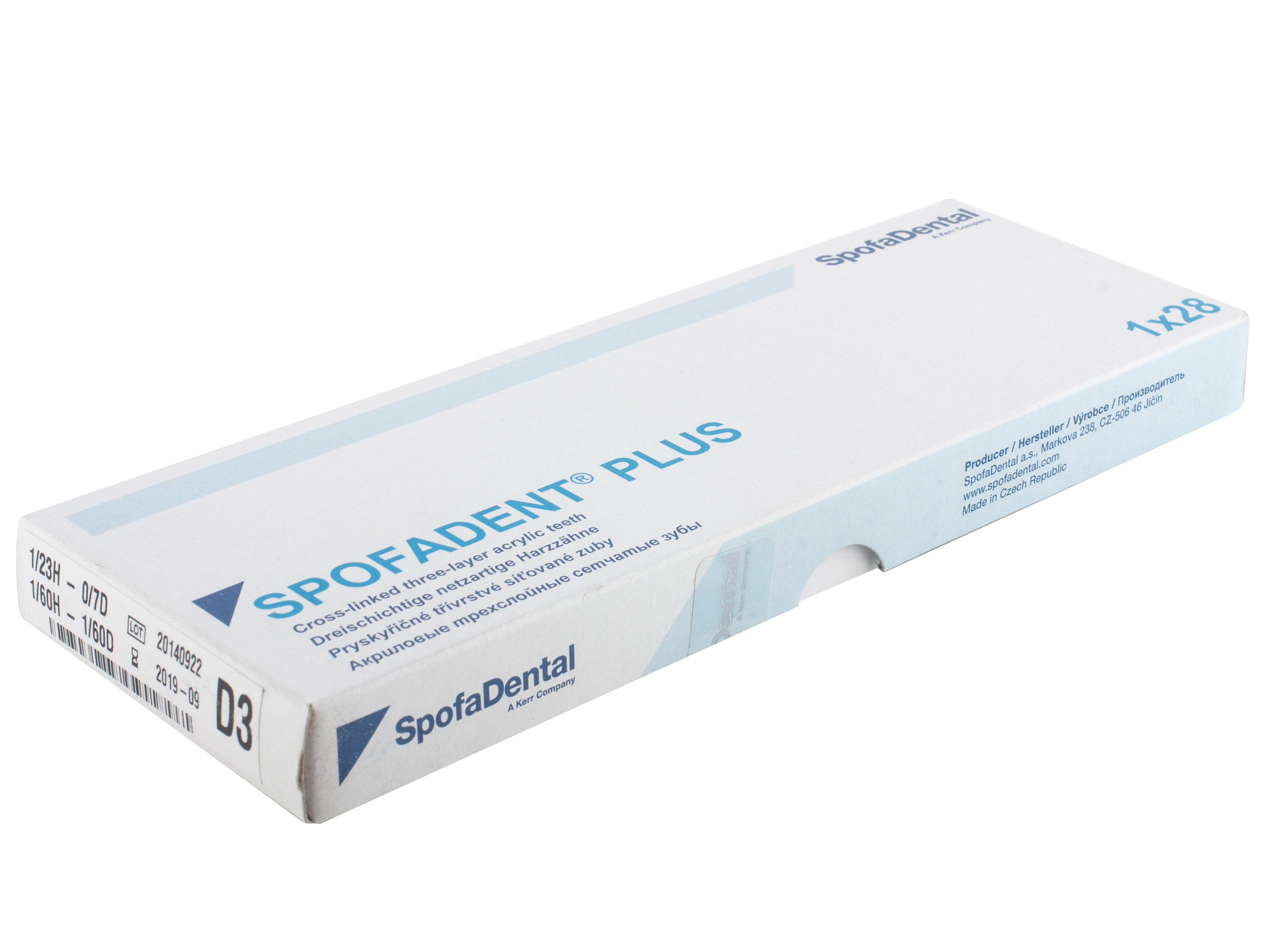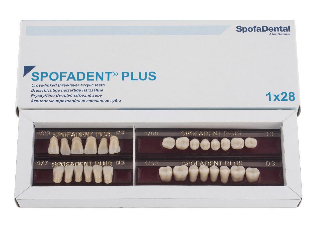 Акриловые зубы - цвет D3, для изготовления зубных протезов съёмного типа. Производятся из сополимеров метилметакрилата. К достоинствам пластмассовых зубов Спофадент Плюс можно отнести высокую цветостабильность, химическую стойкость, устойчивость к истиранию. Комплект – 28 зубов.