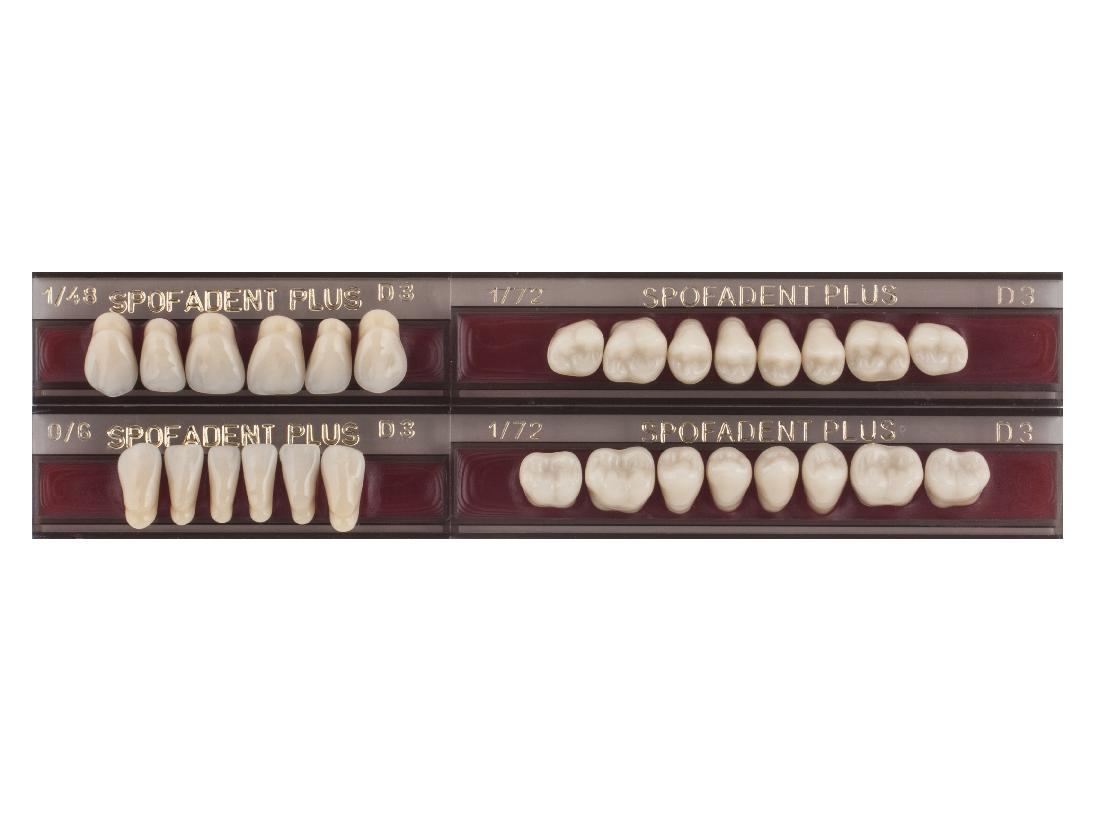 Акриловые зубы - цвет D3, для изготовления зубных протезов съёмного типа. Производятся из сополимеров метилметакрилата. К достоинствам пластмассовых зубов Спофадент Плюс можно отнести высокую цветостабильность, химическую стойкость, устойчивость к истиранию. Комплект – 28 зубов.
