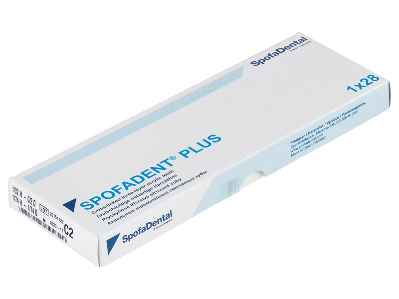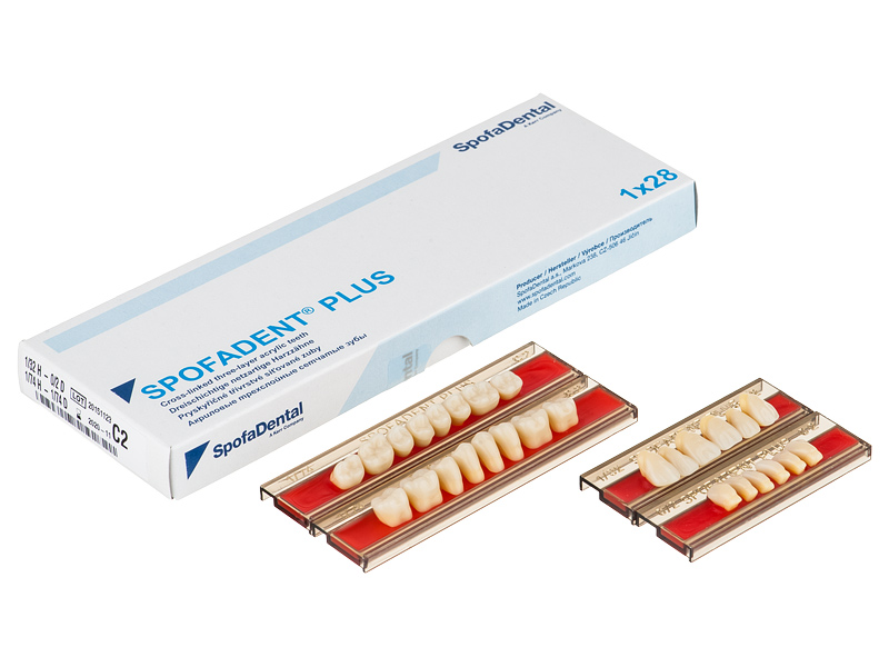Акриловые зубы - цвет С2, для изготовления зубных протезов съёмного типа. Производятся из сополимеров метилметакрилата. К достоинствам пластмассовых зубов Спофадент Плюс можно отнести высокую цветостабильность, химическую стойкость, устойчивость к истиранию. Комплект – 28 зубов.
