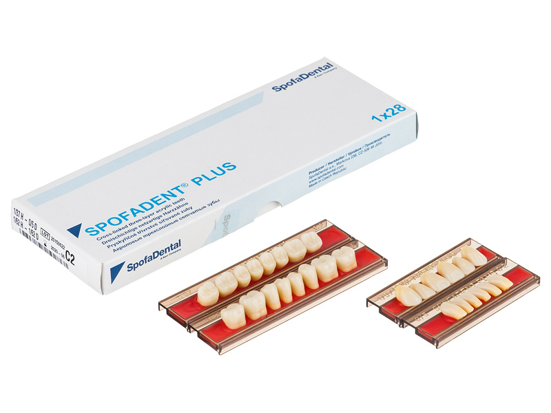 Акриловые зубы - цвет С2, для изготовления зубных протезов съёмного типа. Производятся из сополимеров метилметакрилата. К достоинствам пластмассовых зубов Спофадент Плюс можно отнести высокую цветостабильность, химическую стойкость, устойчивость к истиранию. Комплект – 28 зубов.