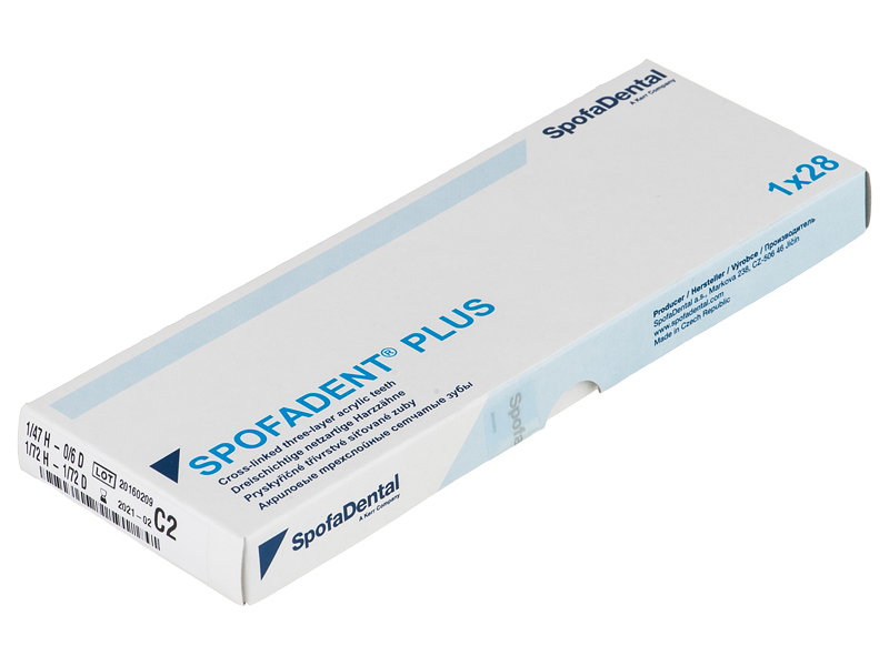 Акриловые зубы - цвет С2, для изготовления зубных протезов съёмного типа. Производятся из сополимеров метилметакрилата. К достоинствам пластмассовых зубов Спофадент Плюс можно отнести высокую цветостабильность, химическую стойкость, устойчивость к истиранию. Комплект – 28 зубов.