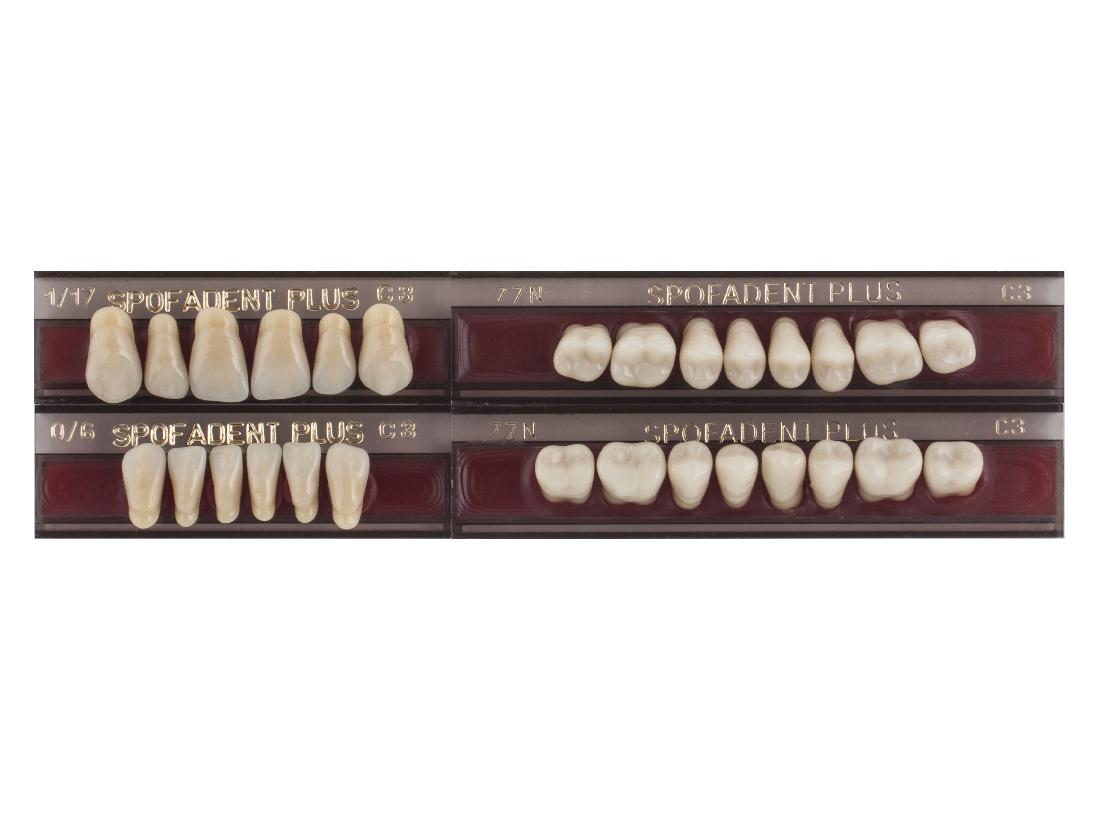 Акриловые зубы - цвет С3, для изготовления зубных протезов съёмного типа. Производятся из сополимеров метилметакрилата. К достоинствам пластмассовых зубов Спофадент Плюс можно отнести высокую цветостабильность, химическую стойкость, устойчивость к истиранию. Комплект – 28 зубов.