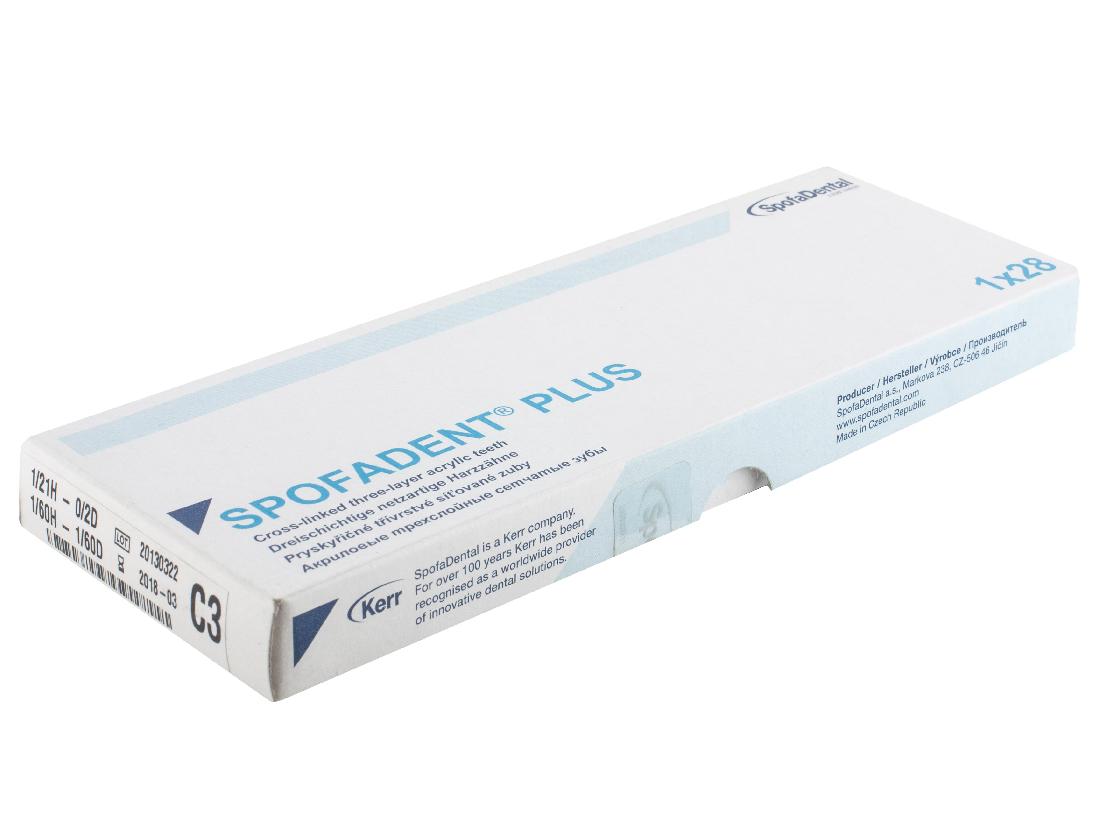 Акриловые зубы - цвет С3, для изготовления зубных протезов съёмного типа. Производятся из сополимеров метилметакрилата. К достоинствам пластмассовых зубов Спофадент Плюс можно отнести высокую цветостабильность, химическую стойкость, устойчивость к истиранию. Комплект – 28 зубов.
