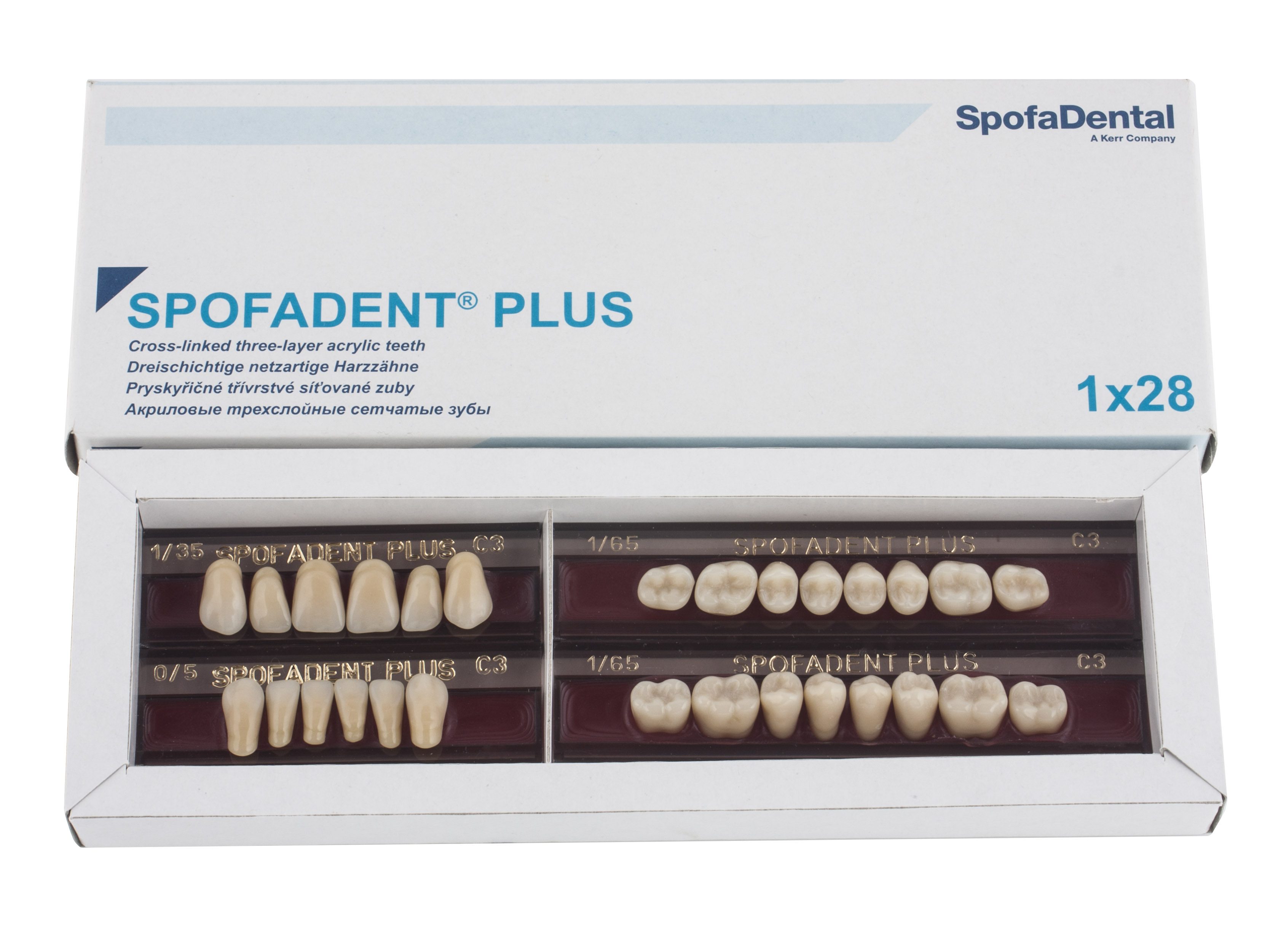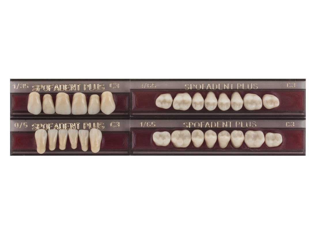 Акриловые зубы - цвет С3, для изготовления зубных протезов съёмного типа. Производятся из сополимеров метилметакрилата. К достоинствам пластмассовых зубов Спофадент Плюс можно отнести высокую цветостабильность, химическую стойкость, устойчивость к истиранию. Комплект – 28 зубов.