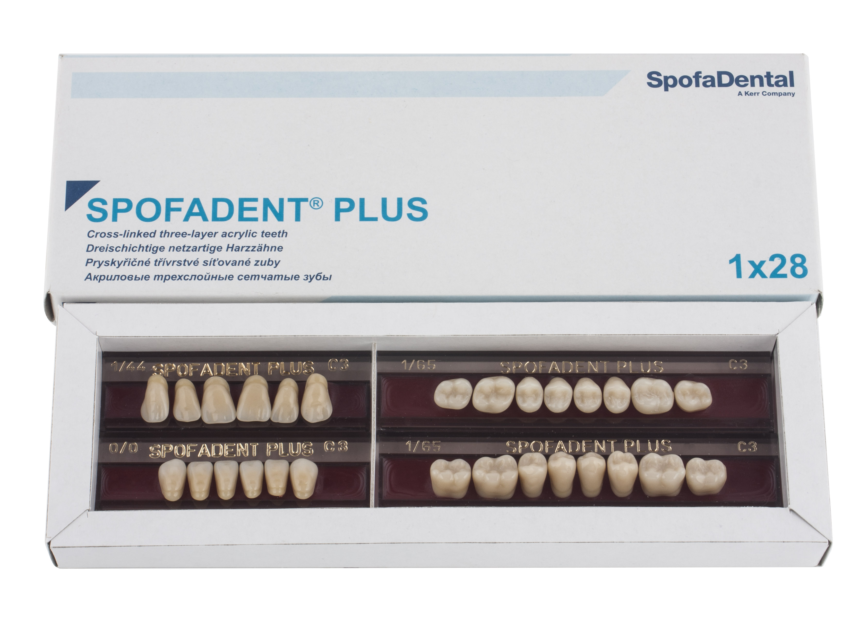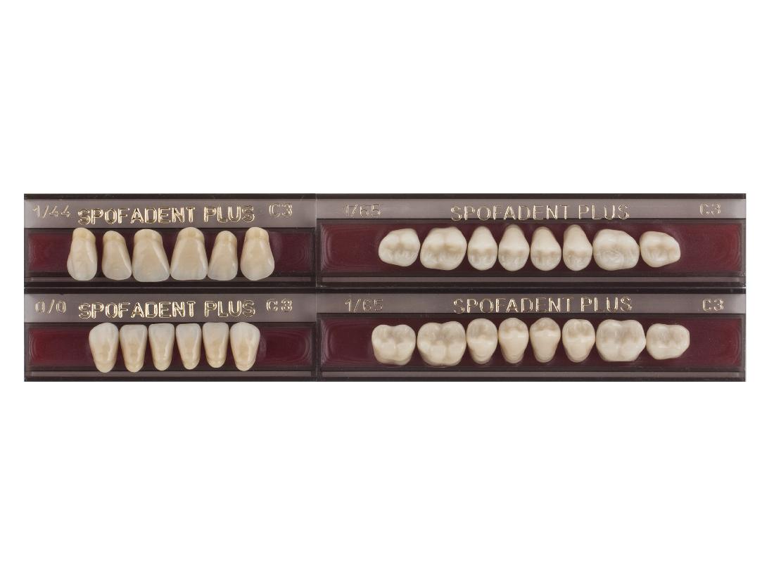 Акриловые зубы - цвет С3, для изготовления зубных протезов съёмного типа. Производятся из сополимеров метилметакрилата. К достоинствам пластмассовых зубов Спофадент Плюс можно отнести высокую цветостабильность, химическую стойкость, устойчивость к истиранию. Комплект – 28 зубов.