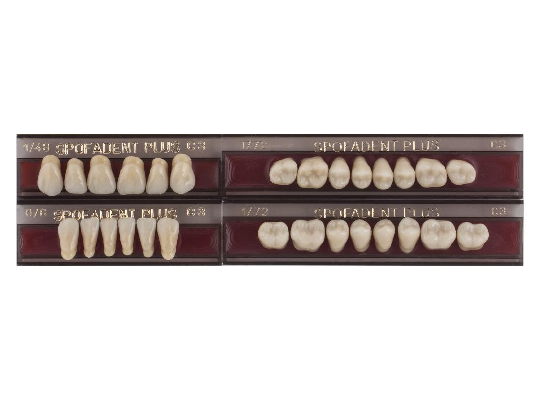 Акриловые зубы - цвет С3, для изготовления зубных протезов съёмного типа. Производятся из сополимеров метилметакрилата. К достоинствам пластмассовых зубов Спофадент Плюс можно отнести высокую цветостабильность, химическую стойкость, устойчивость к истиранию. Комплект – 28 зубов.
