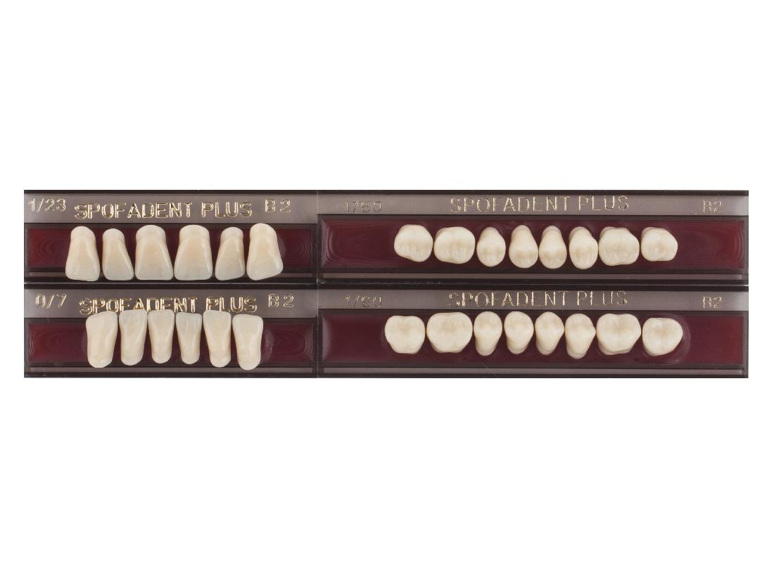 Акриловые зубы - цвет В2 для изготовления зубных протезов съёмного типа. Производятся из сополимеров метилметакрилата. К достоинствам пластмассовых зубов Спофадент Плюс можно отнести высокую цветостабильность, химическую стойкость, устойчивость к истиранию. Комплект – 28 зубов.