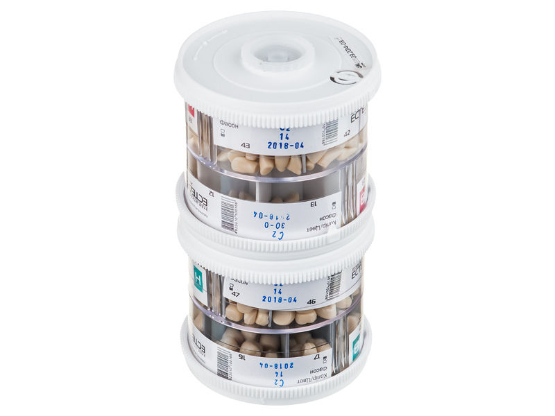 Зубы из пластмассы предназначены для создания съемных конструкций зубных протезов. Обладают отличными адгезивными свойствами для крепления к основе протеза. Флуоресцентные, хорошо сохраняют цвет. Конструкции достаточно прочные и слабо поддающиеся истиранию, не изнашивают естественные антагонисты. Имеют отличный эстетический вид.